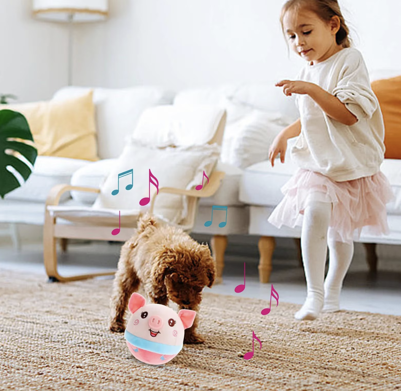 Jucaria interactiva porcusor din plus este ideala pentru distractia copiilor si a animalelor de companie. Conceputa cu functii de sarit si sunete vesele, aceasta jucarie prinde imediat atentia si aduce voie buna in orice moment al zilei. Cu un design dragut si material moale, este sigura si placuta la atingere.