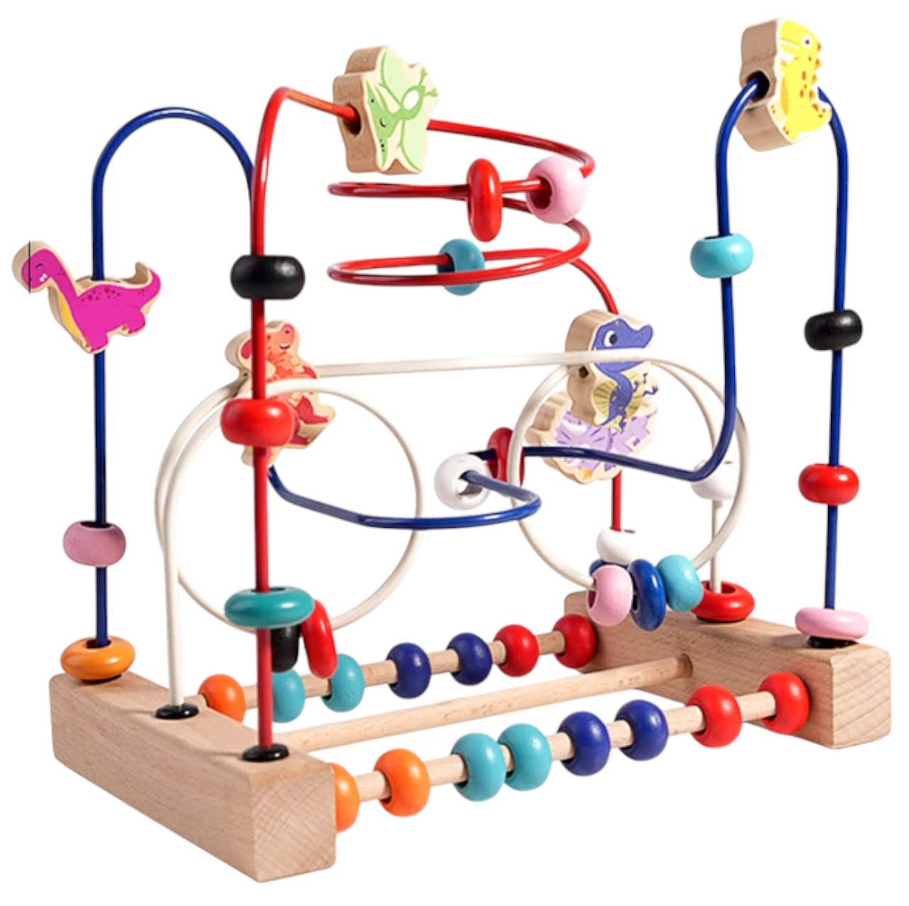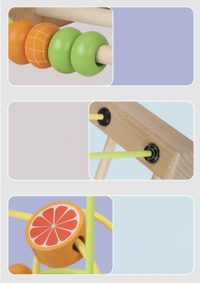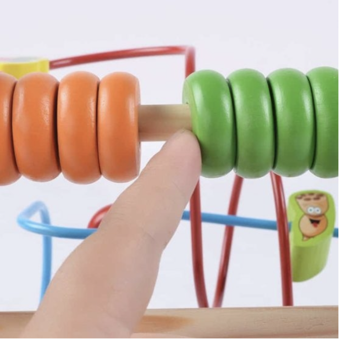 Prin alergarea margelelor din lemn pe traseele din sarma copilul tau invata culorile, isi dezvolta abilitatile motorii, coordonarea miscarilor ochi-mana si mai ales sa numere.