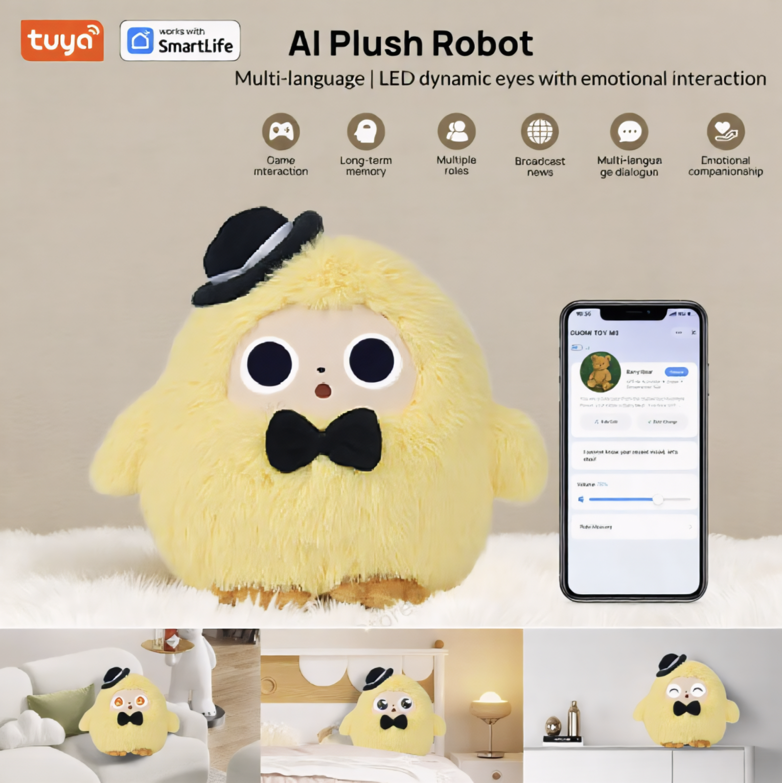 Jucarie plus inteligenta AI de 28 cm care comunica natural in limba romana si peste 60 de limbi. Ofera conversatii reale, raspunsuri adaptive si personalizare completa prin aplicatia Tuya, devenind un companion interactiv pentru copii si adulti.