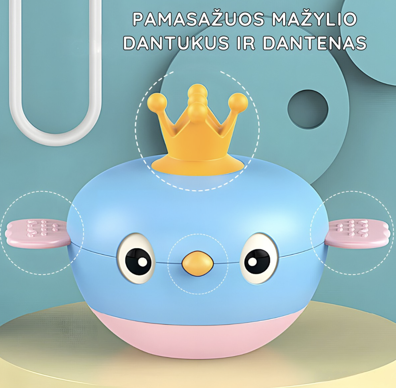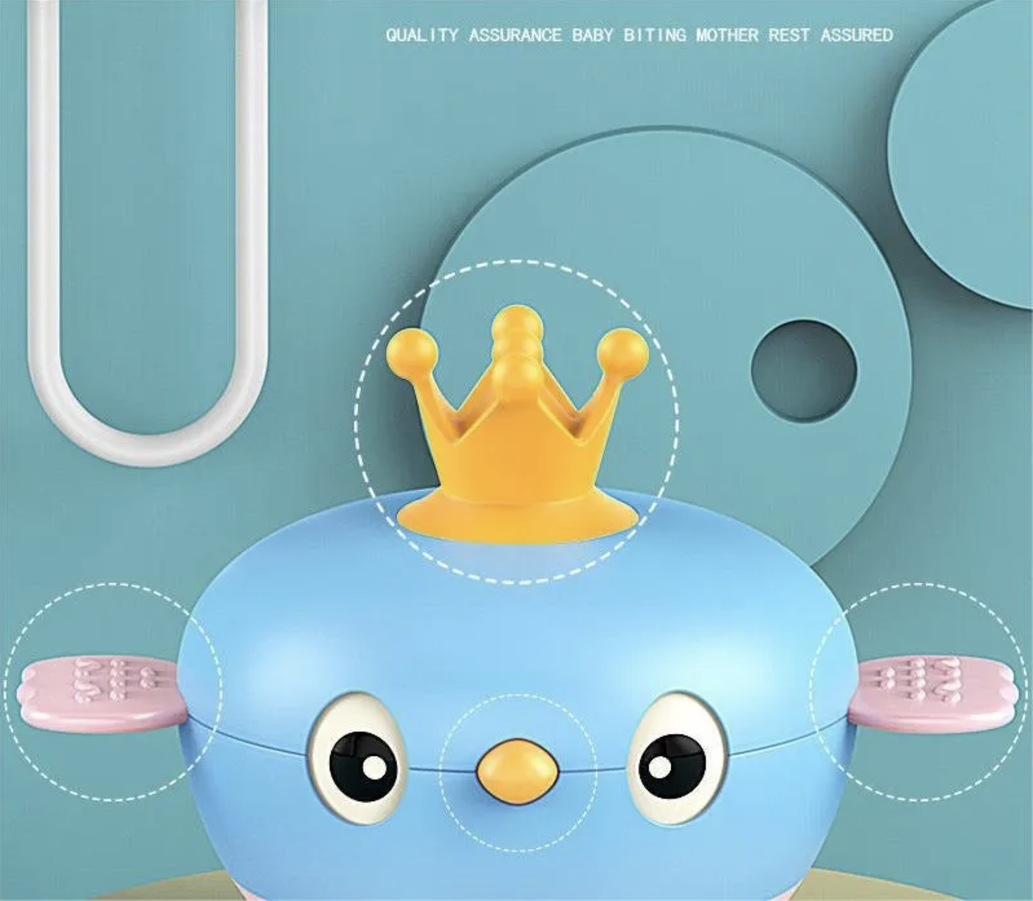 Jucaria este conceputa pentru a capta atentia bebelusului si a stimula dezvoltarea senzoriala intr-un mod distractiv. Aceasta include piese siliconate, oferind ore de joaca educativa. Ochii care se misca si sunetele emise atrag atentia copilului si incurajeaza curiozitatea si explorarea.
