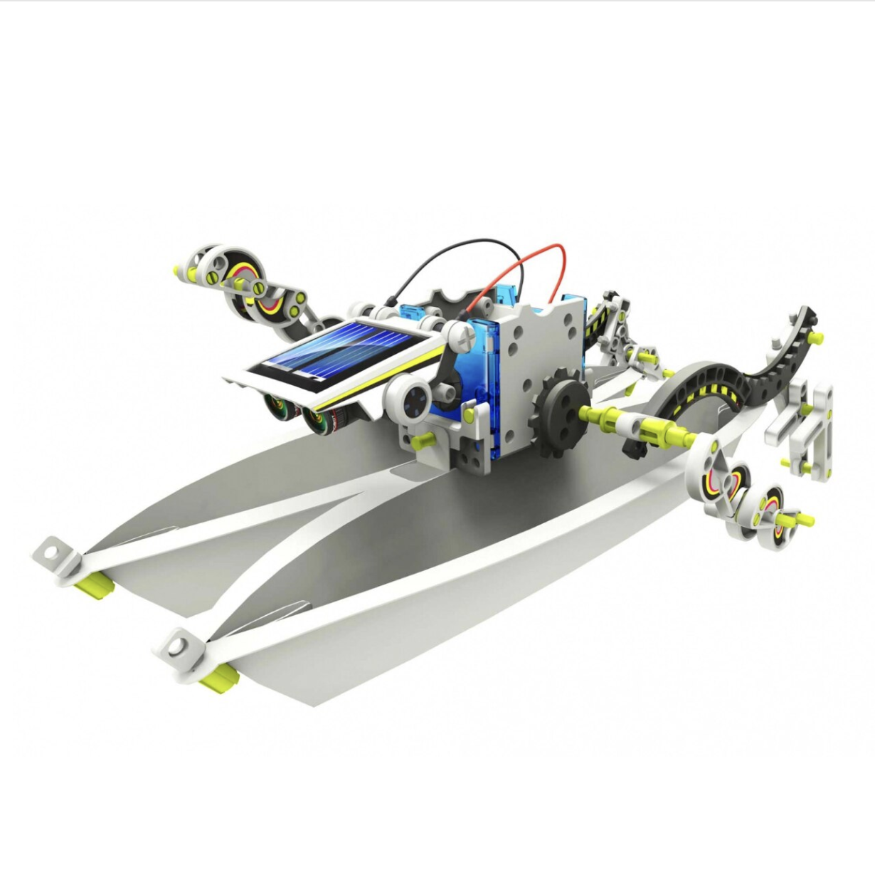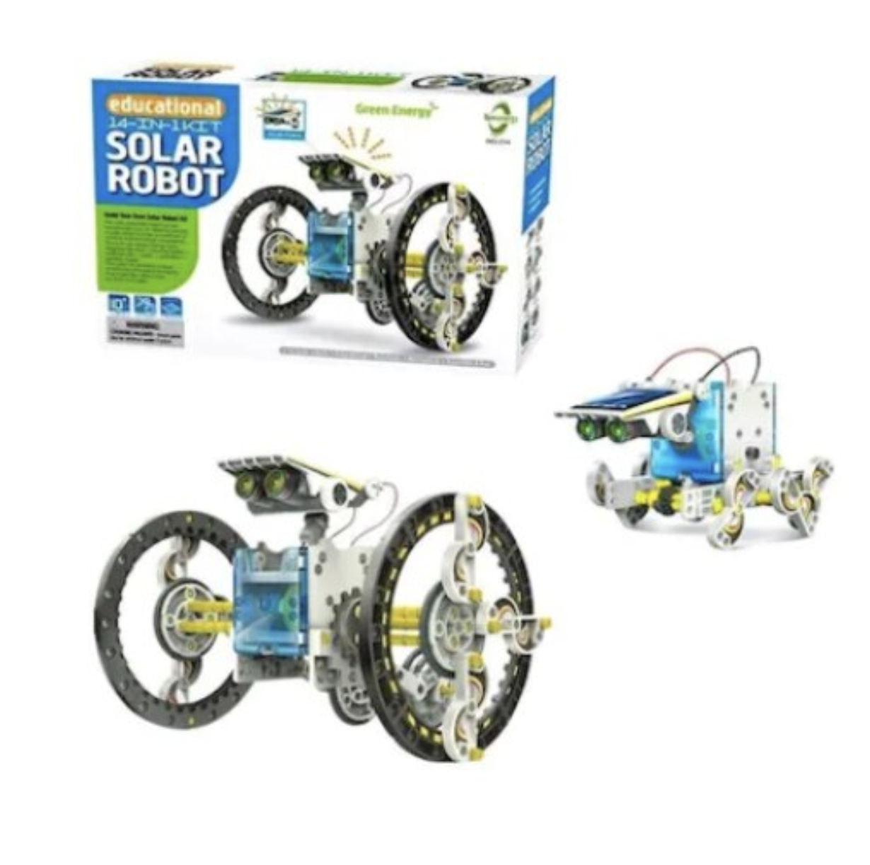 Cu acest Kit robotica de constructie Roboti Solari 14 in 1 cei mici intra in tainele roboticii si invata notiunile de robotica si energii alternative. Avand in vedere ca energia alternativa este viitorul, kitul ofera copiilor prilejul perfect de a invata conceptele de baza din spatele acestei tehnologii. Pe masura ce asambleaza o jucarie distractiva care nu necesita baterii, copiii invata cum energia solara se transforma intr-un mic motor.