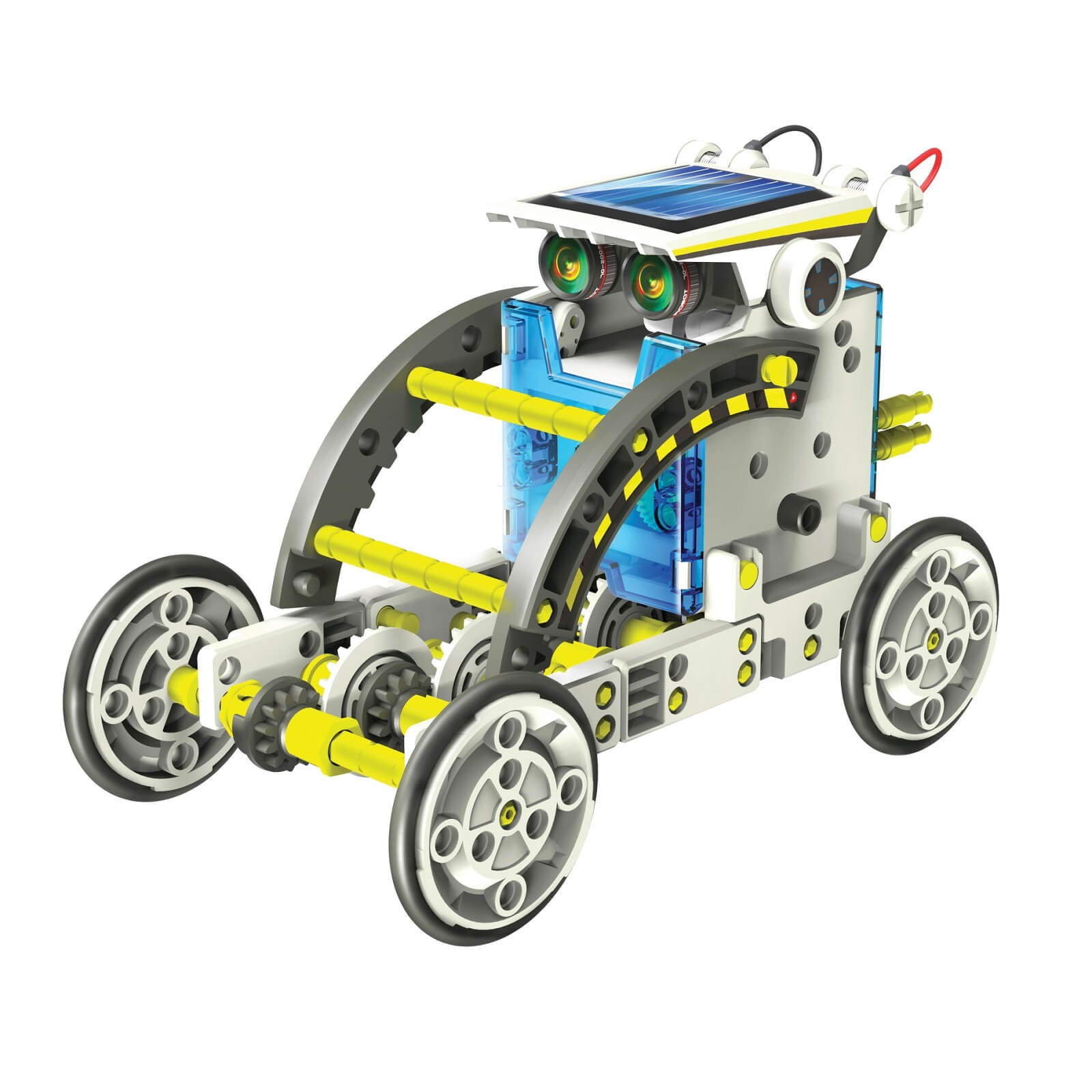 Prin acest Kit robotica de constructie Roboti Solari 14 in , copiii isi vor putea construi propriile jucarii, iar parintii nu vor avea grija bateriilor! Robotul construit poate fi pusi in miscare afara, la lumina soarelui sau in casa, la o lumina halogen de 50 watt.