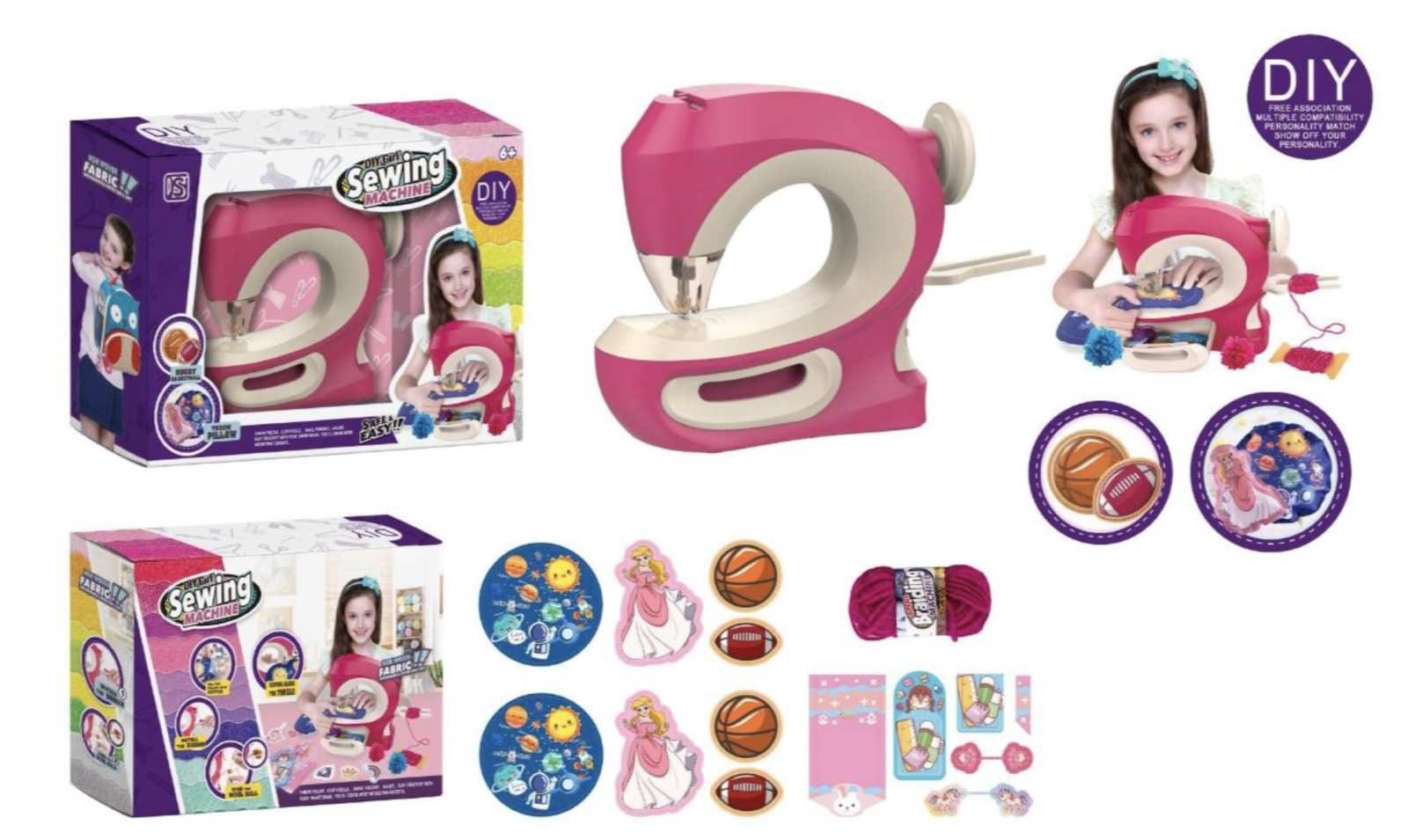 Masina de cusut pentru copii este o jucarie educativa care reproduce functiile principale ale unei masini reale, oferind o experienta sigura si distractiva. Include sertar de depozitare pentru materiale, doua bobine de ata colorata, accesorii textile variate, suport pentru foarfeca cu 2 capete si suport pentru creioane. Functioneaza cu 4 baterii AA (neincluse).