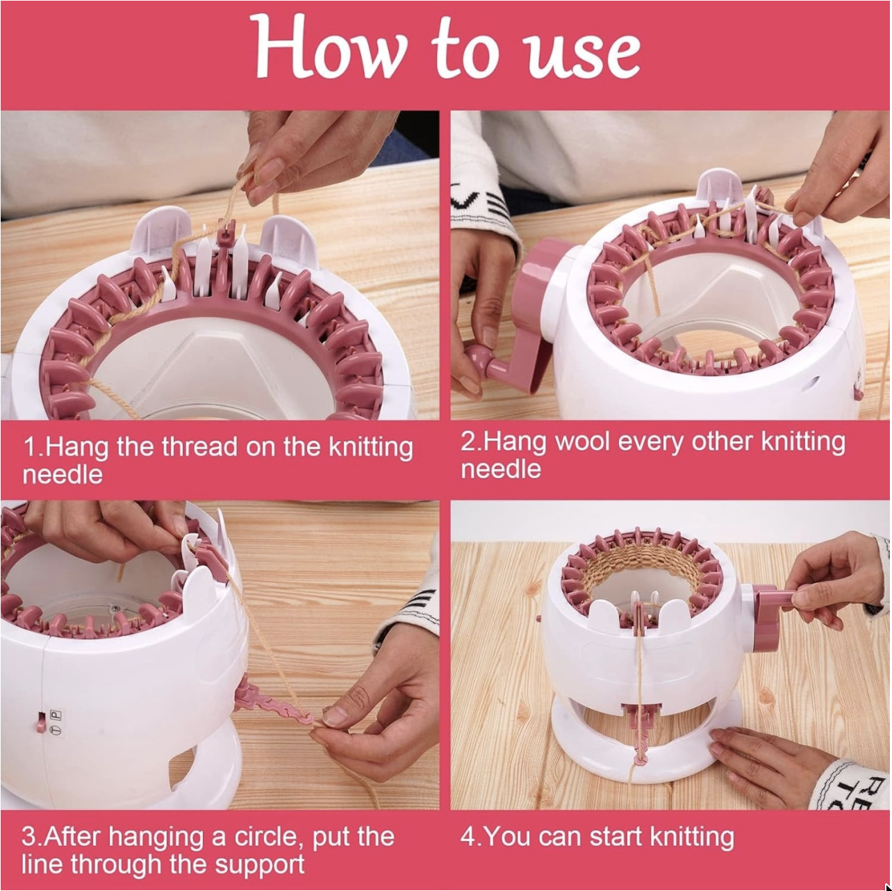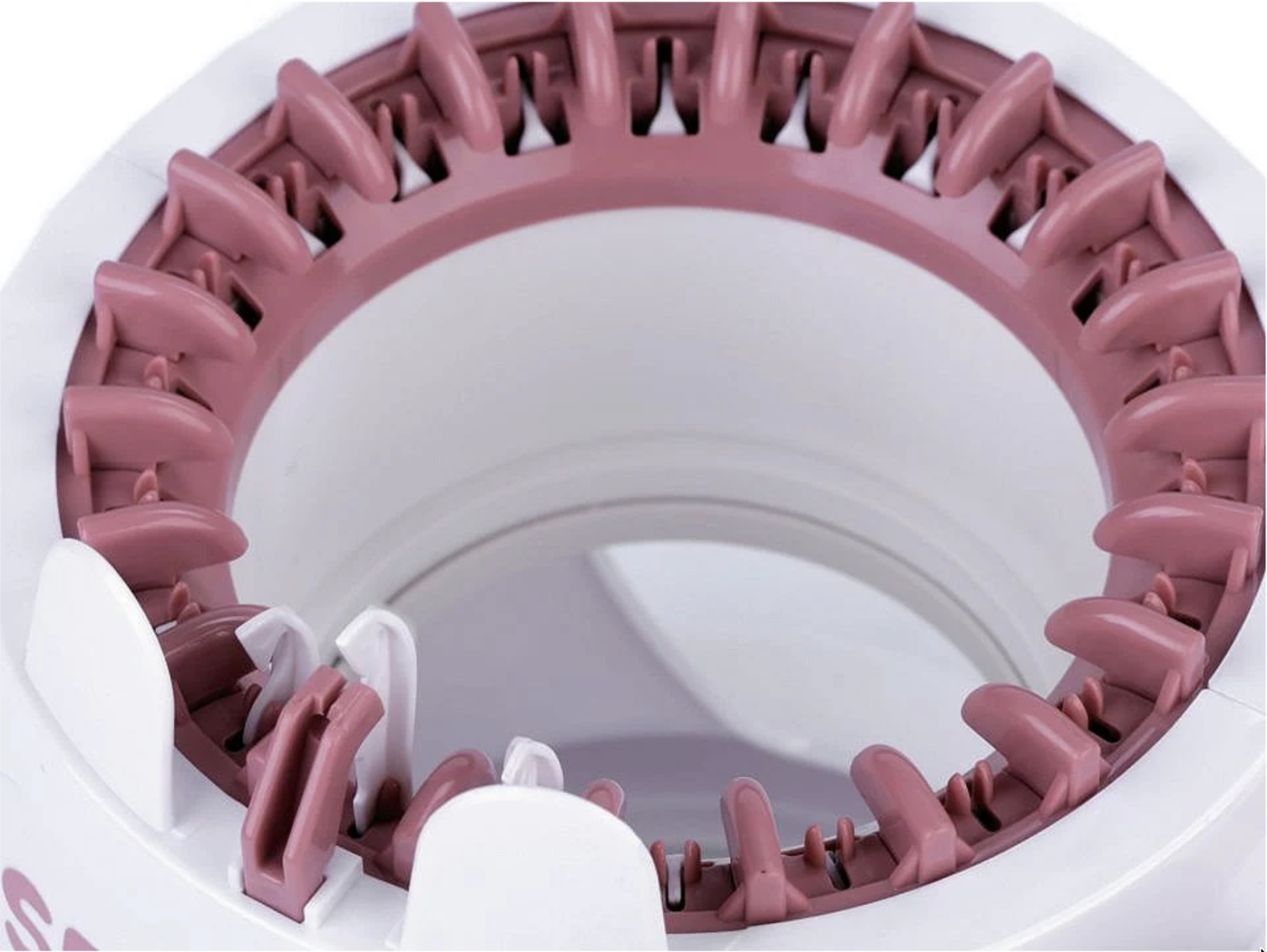 Masina de tricotat Sentro cu 22 de ace este o solutie simpla si rapida pentru realizarea de articole tricotate fara experienta. Functioneaza manual, prin rotirea manivelei, creand modele uniforme fara utilizarea andrelelor.