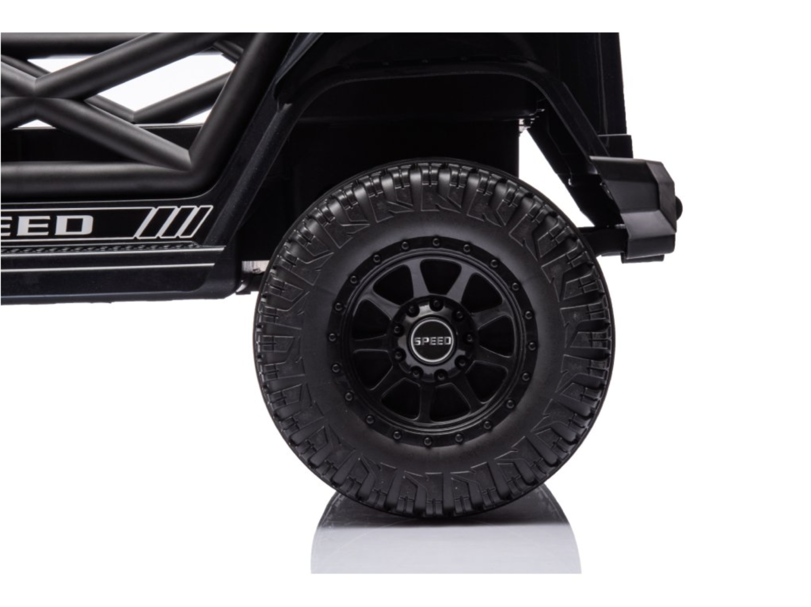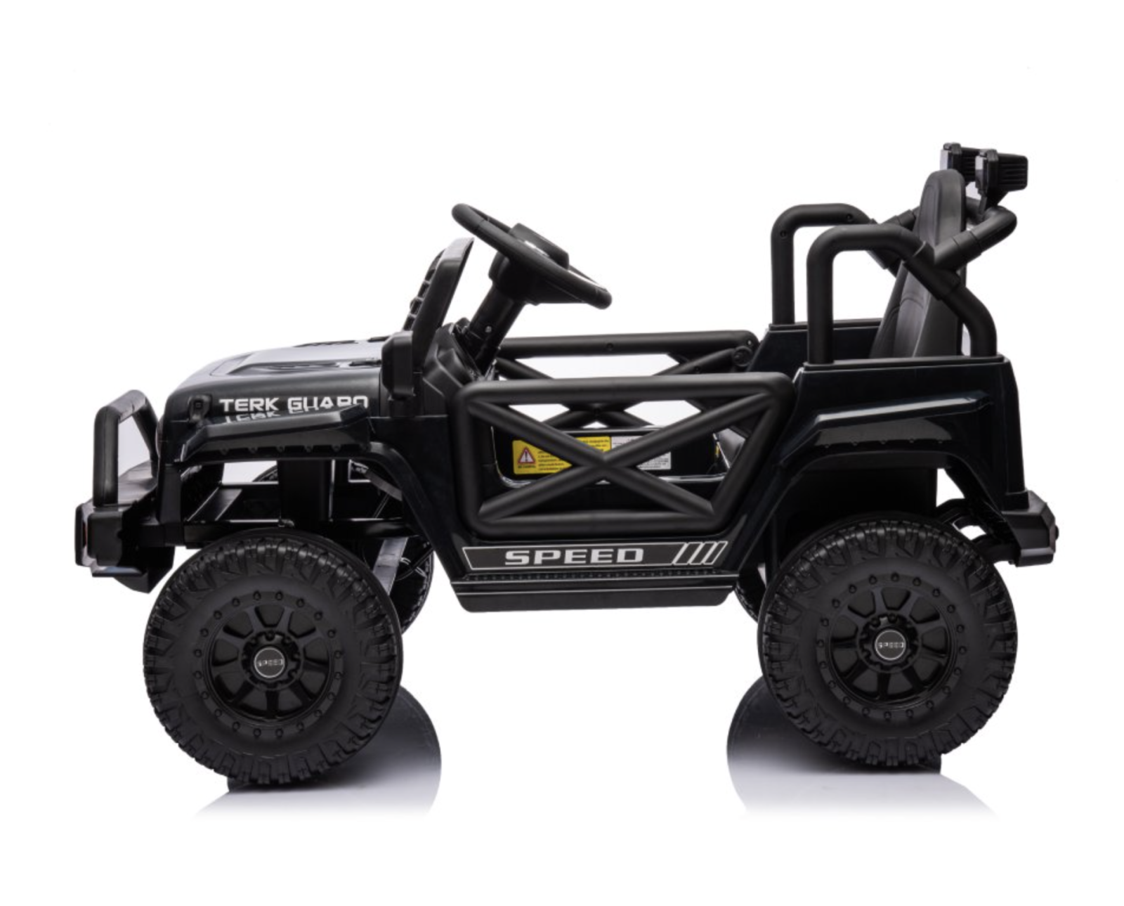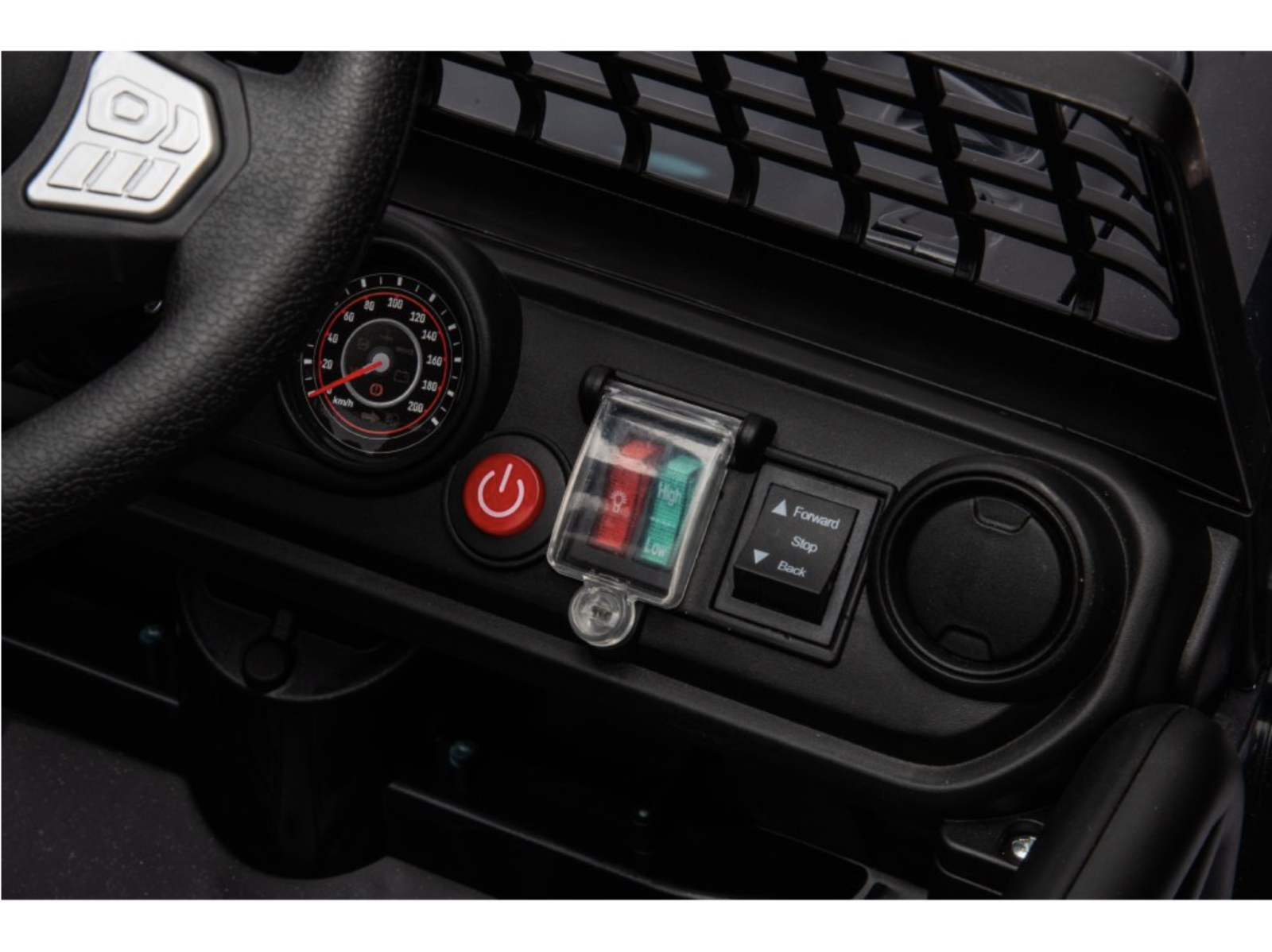 Vehiculul dispune de lumini LED frontale, panou audio cu intrare USB si AUX, melodii preincarcate si claxon pe volan.