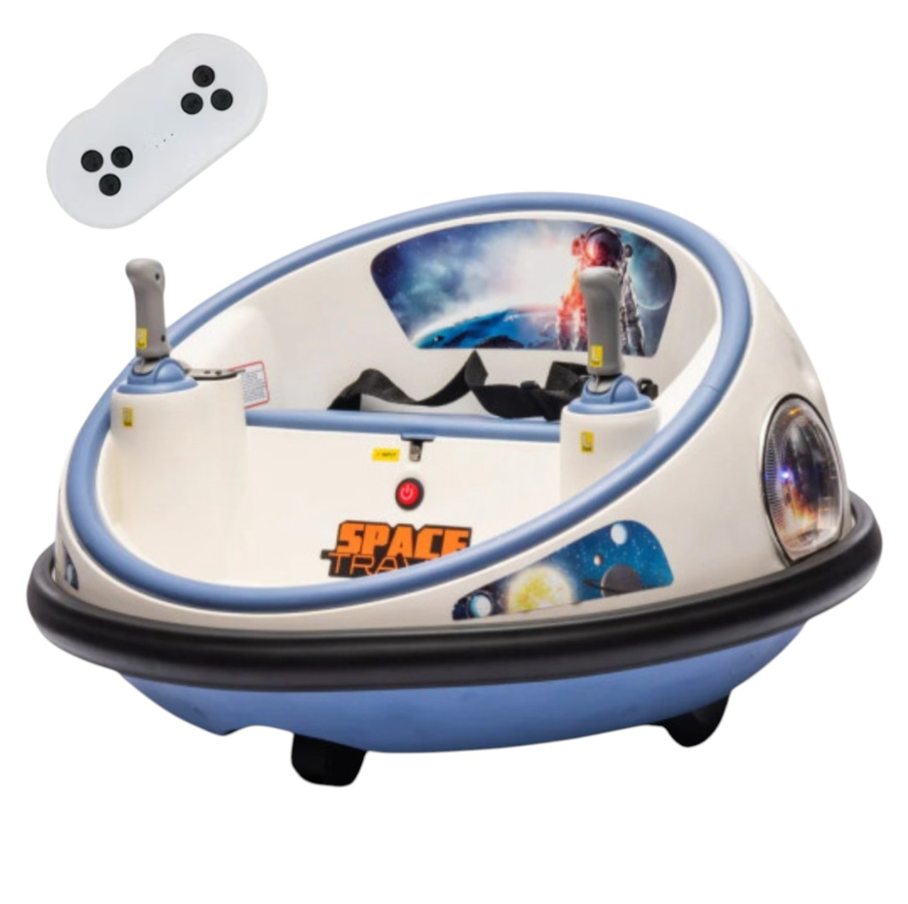 Masinuta Electrica Bumper Car DLS-K1 Nava Spatiala Alb-Albastru, Rotire 360, Bluetooth, 1-6 ani