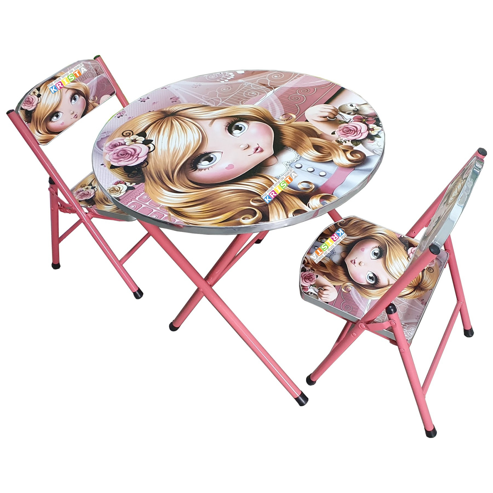 Masuta cu 2 scaune pentru copii, pliabile, cadru metalic si lemn, roz, My Princess R1 - Krista®