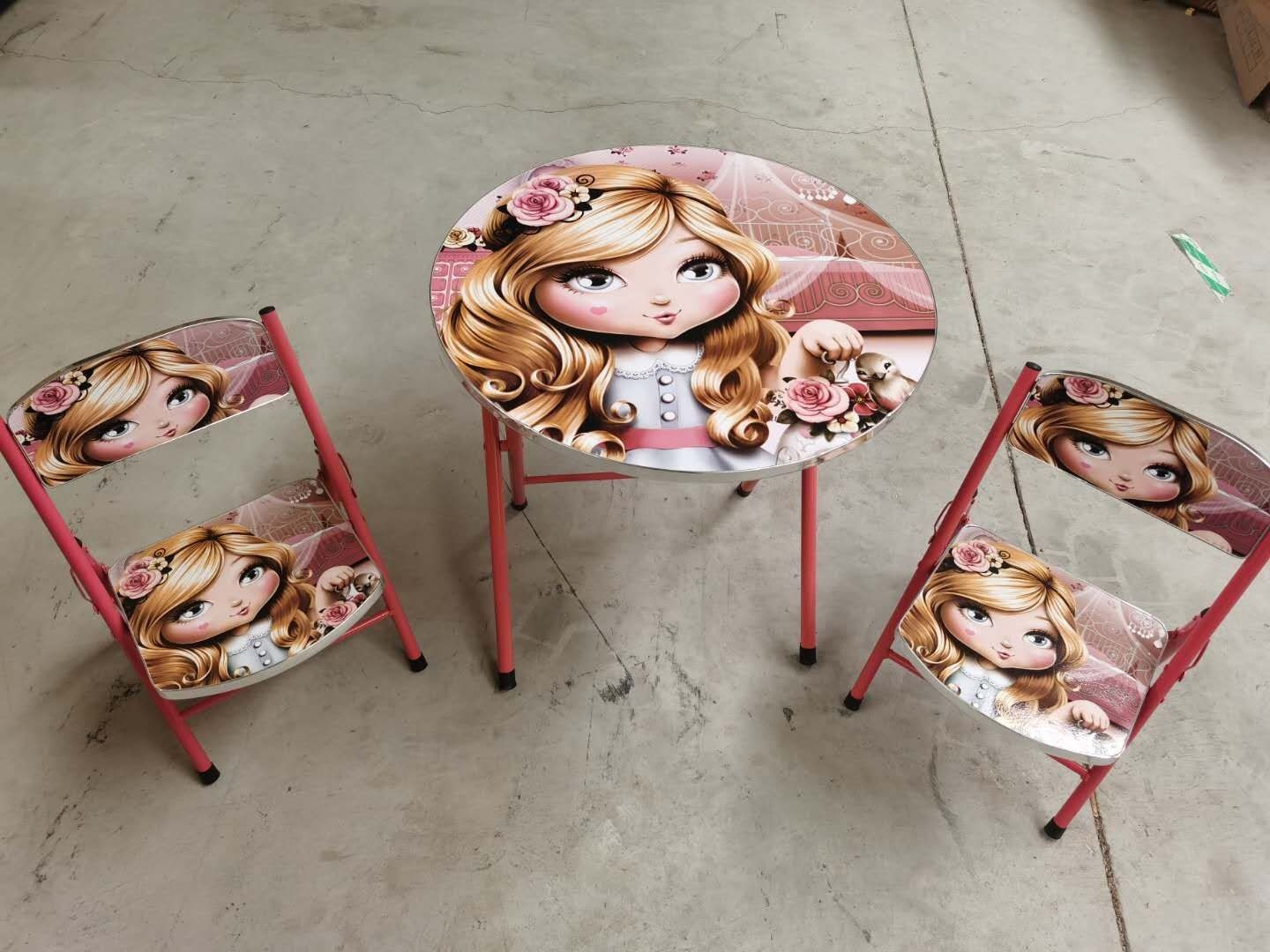 Masuta cu 2 scaune pentru copii, pliabile, cadru metalic si lemn, roz, My Princess P1