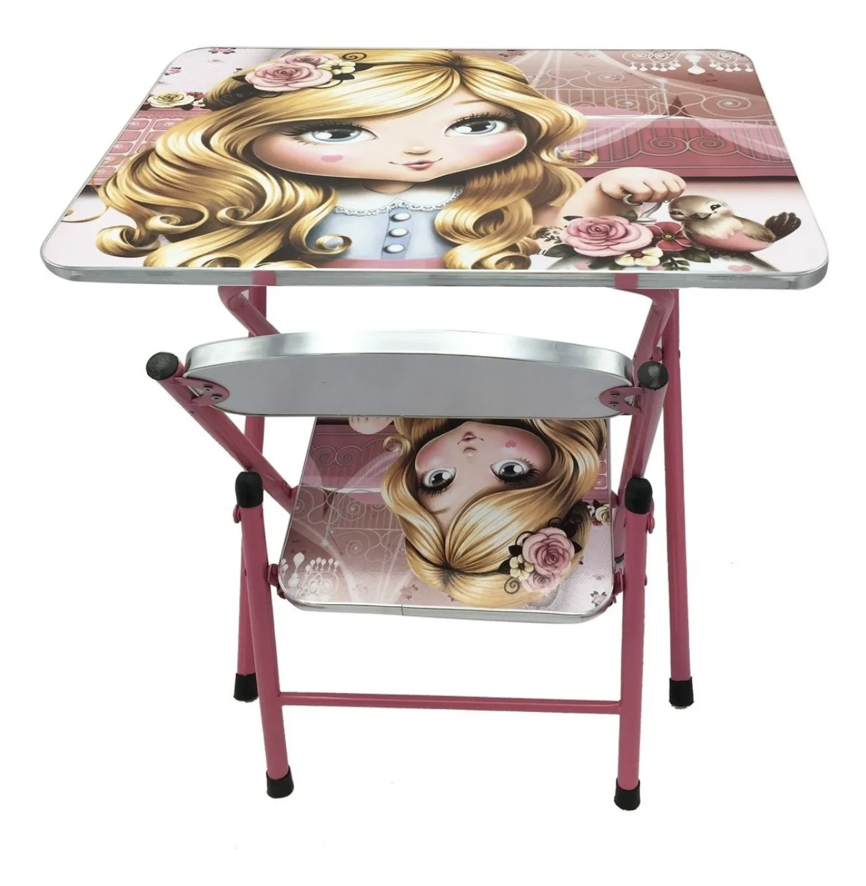 Masuta cu scaun pentru copii, pliabile, cadru metalic si lemn, roz, My Princess P1