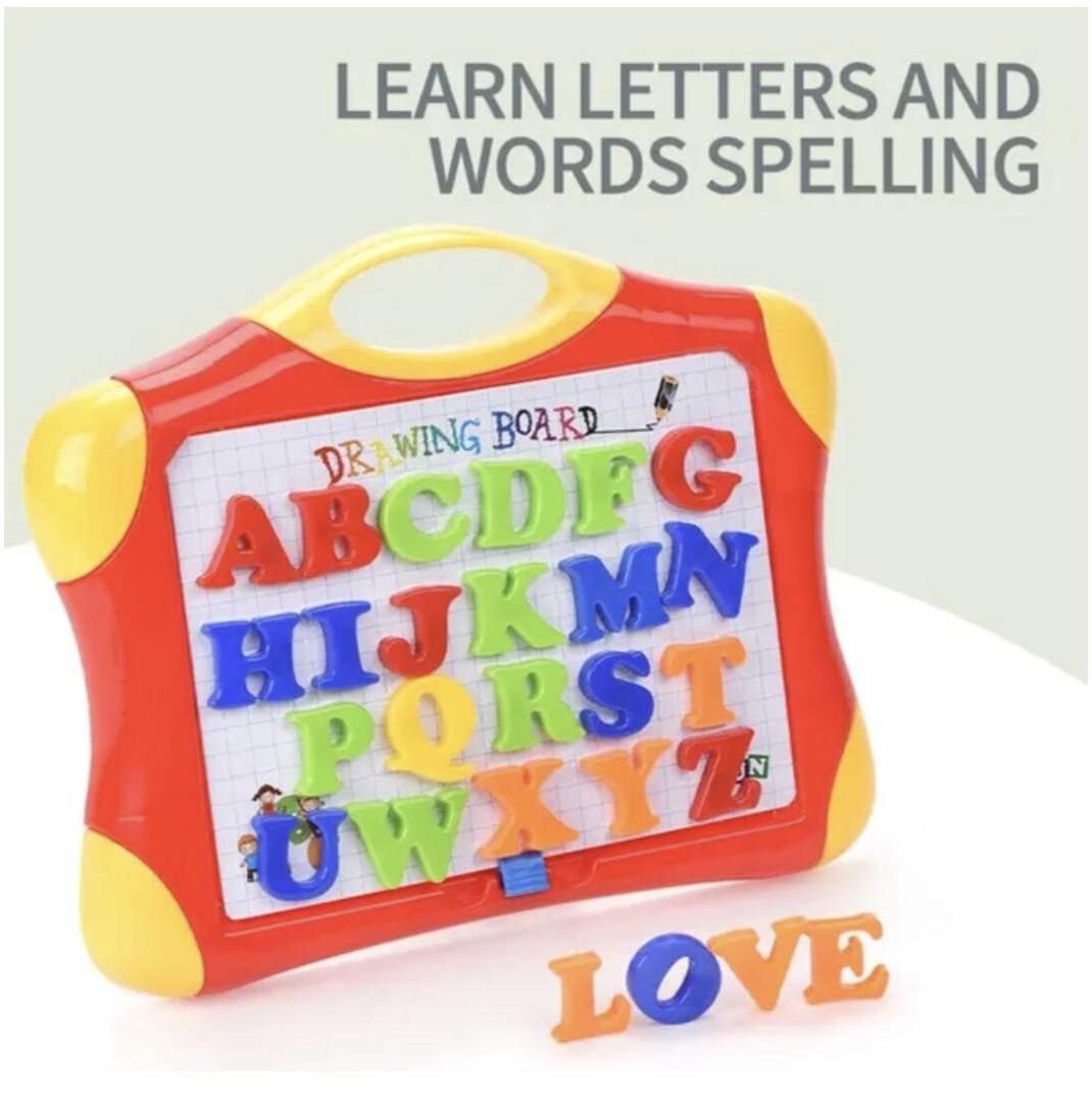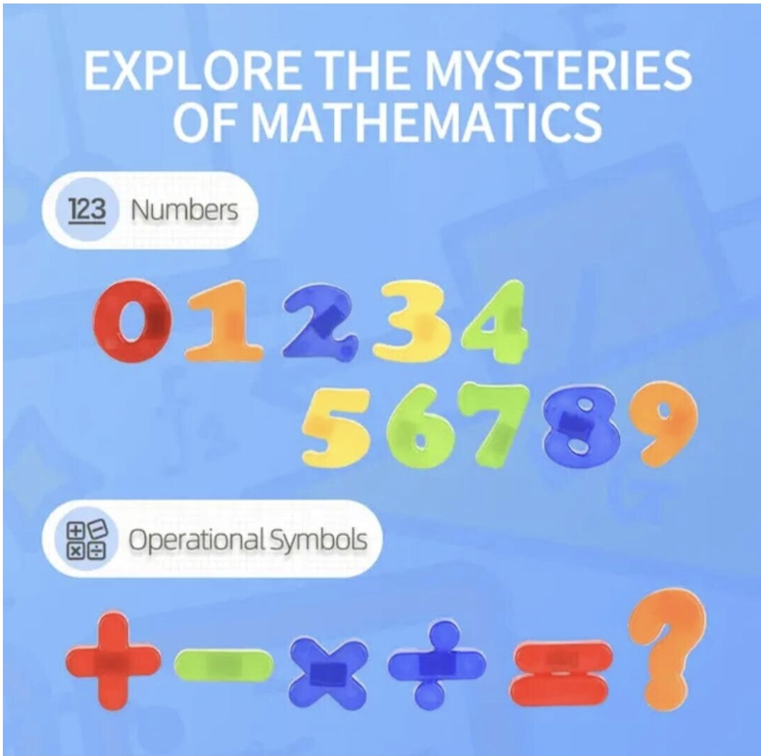 • Continut: masuta cu tabla magnetica + litere magnetice + cifre magnetice + semne matematice + marker + burete/stergeator