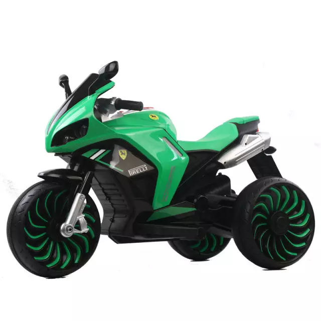 Motocicleta electrica pentru copii 2-10 ani, cu doua motoare, acumulator 12V, cu aburi, muzica si lumini, 266 verde