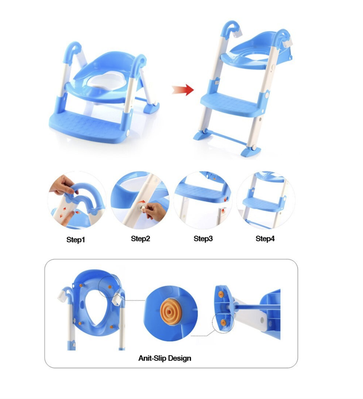 Olita, Reductor toaleta copii si trepte, bleu cu alb, reglabil, pliabil