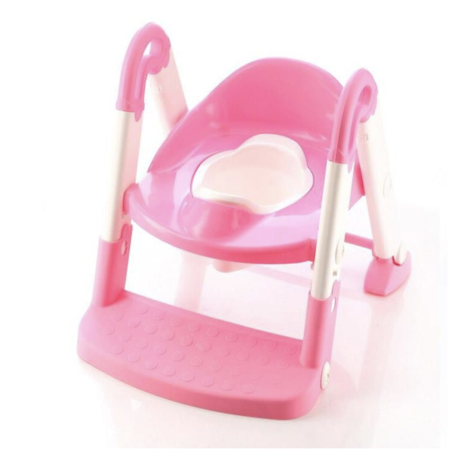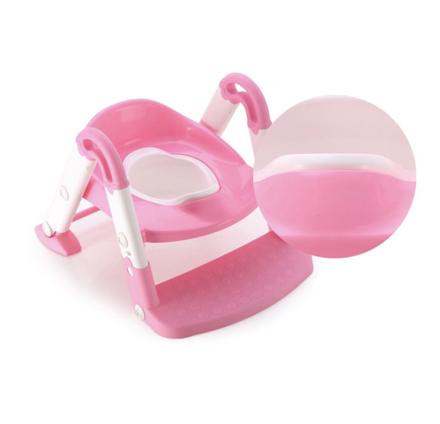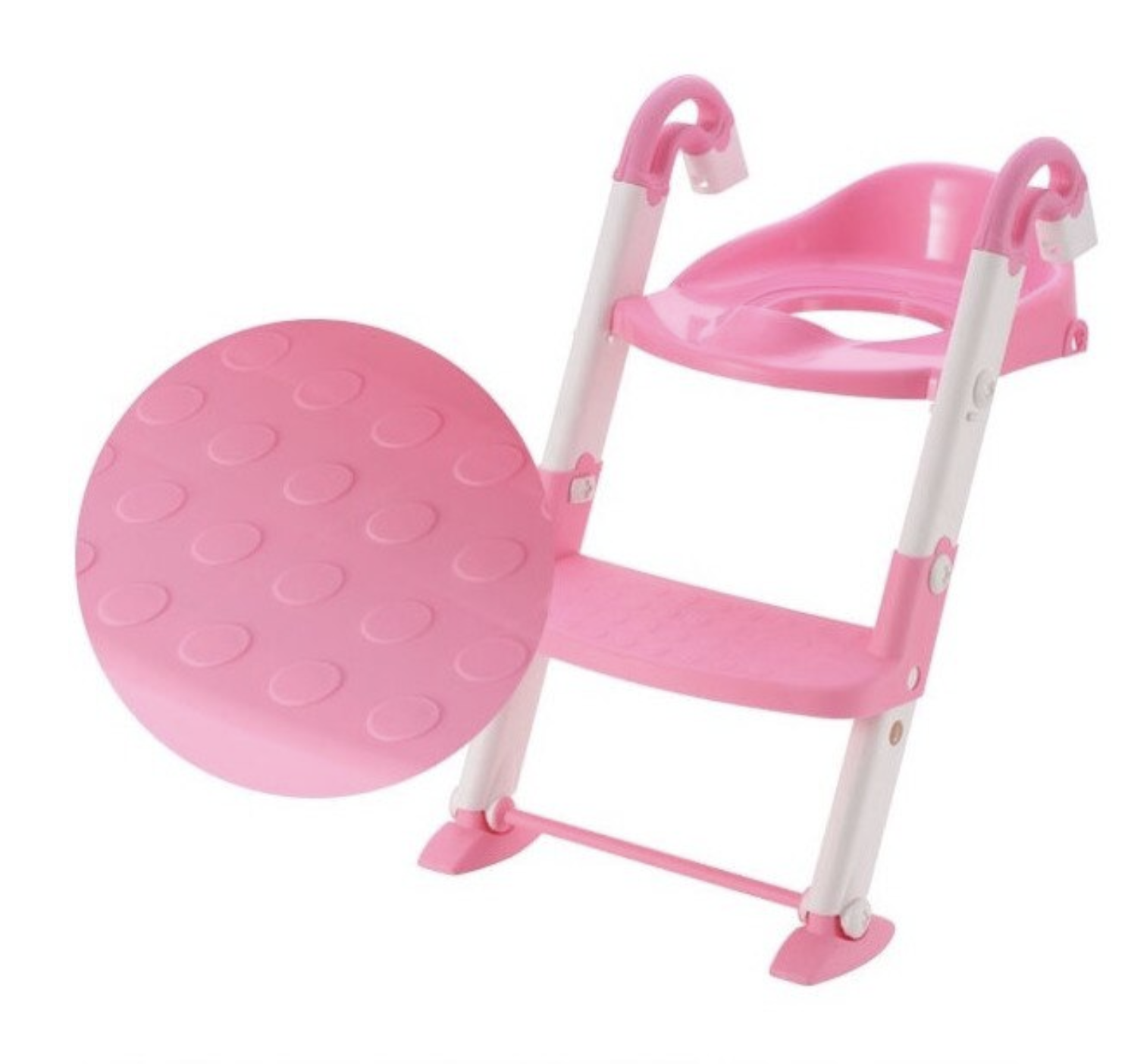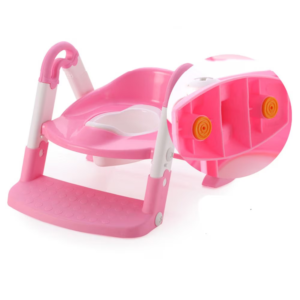 Olita, Reductor toaleta copii si trepte, roz cu alb, reglabil, pliabil
