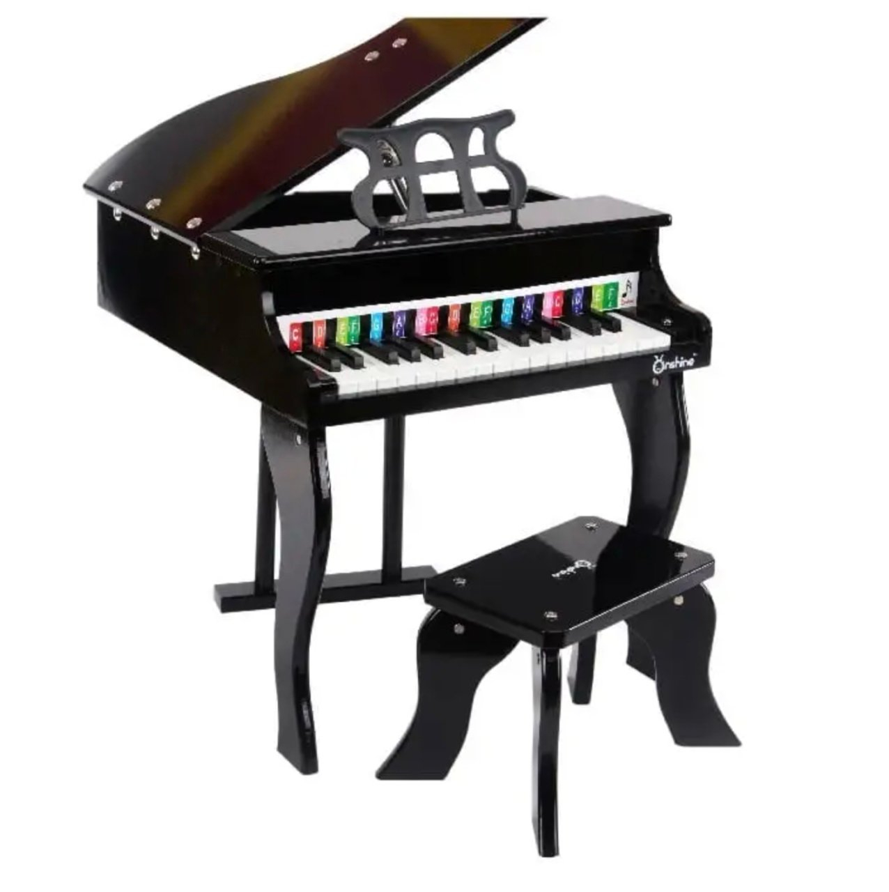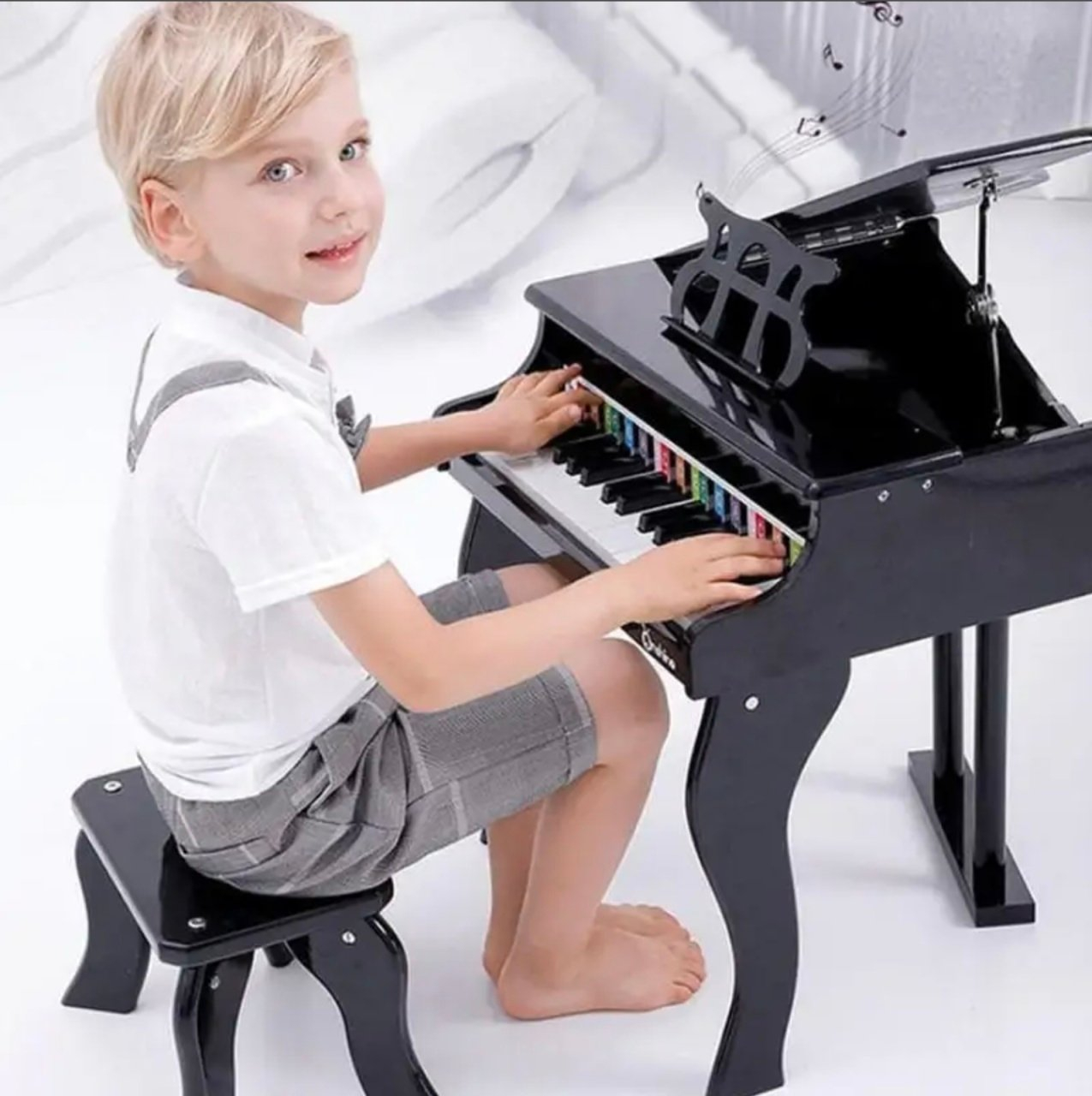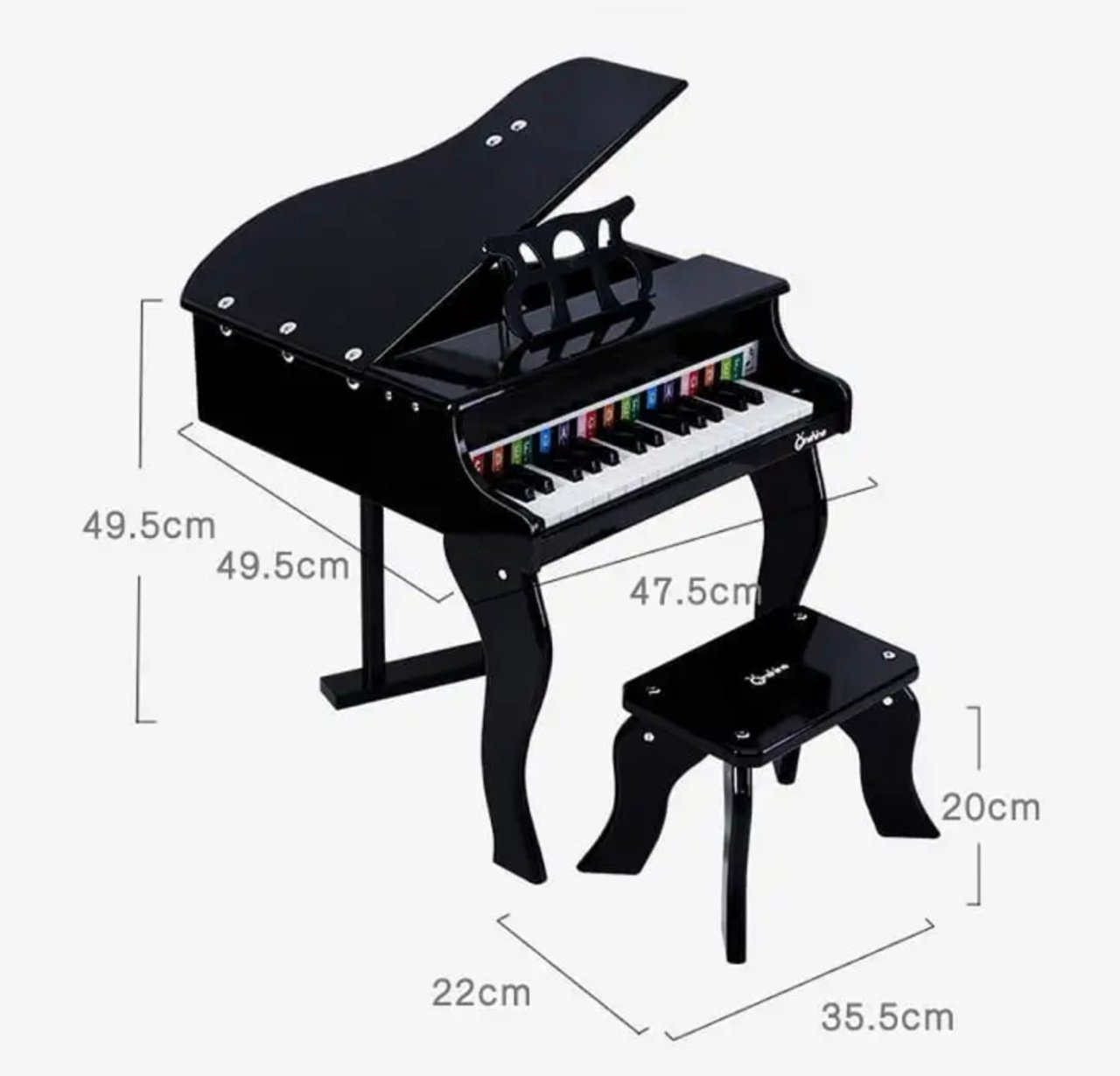 Un pian elegant, conceput special pentru micii muzicieni! Acest pian cu coada din lemn este alegerea ideala pentru a introduce copiii in lumea fascinanta a muzicii, incurajand expresivitatea, creativitatea si coordonarea.