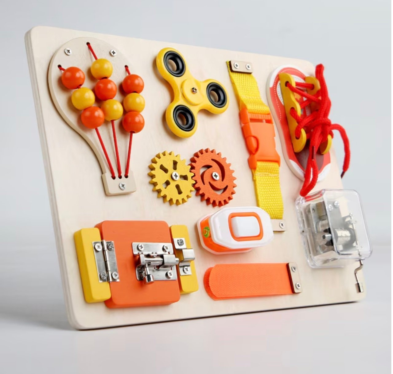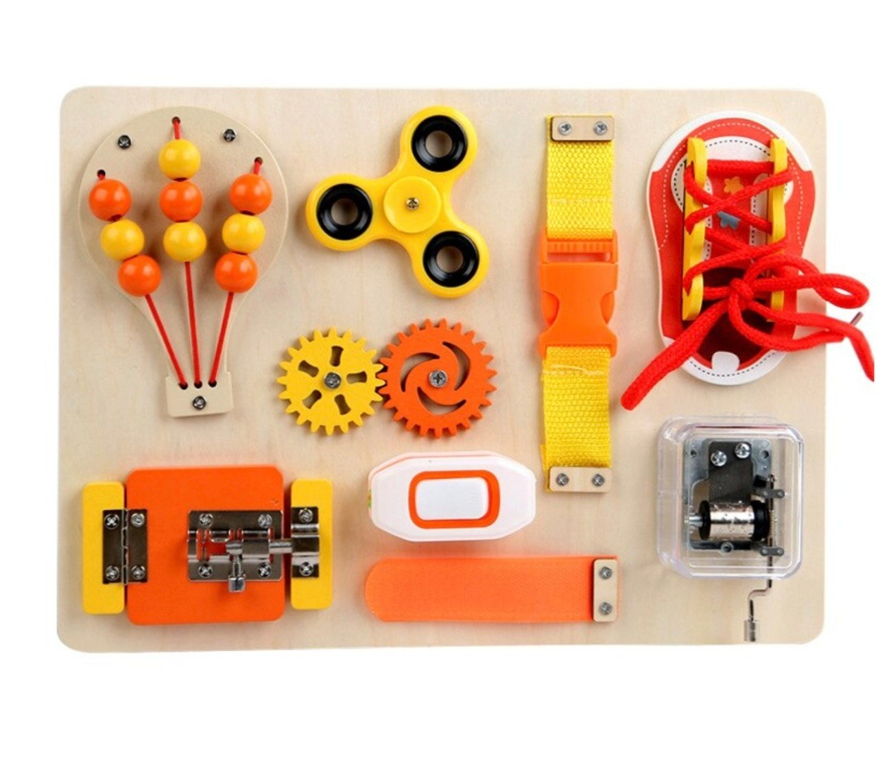 Placa Montessori Busy Board cu 9 activitati Shoe este jucaria perfecta pentru copiii care doresc sa invete si sa se distreze in acelasi timp. Acest board din lemn contine activitati care ajuta la dezvoltarea abilitatilor motorii fine, coordonarii mana-ochi si abilitatilor de rezolvare a problemelor, intr-un mod interactiv si captivant.