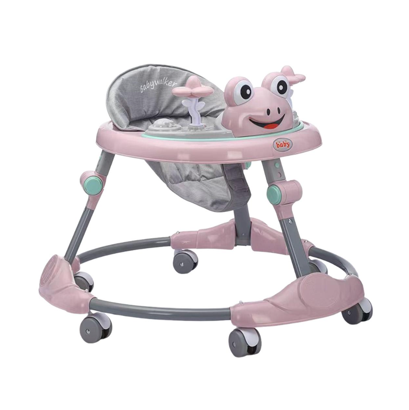 Premergator reglabil pe inaltime cu panou detasabil Broscuta Roz, pliabil, 6 roti, 6 luni+
