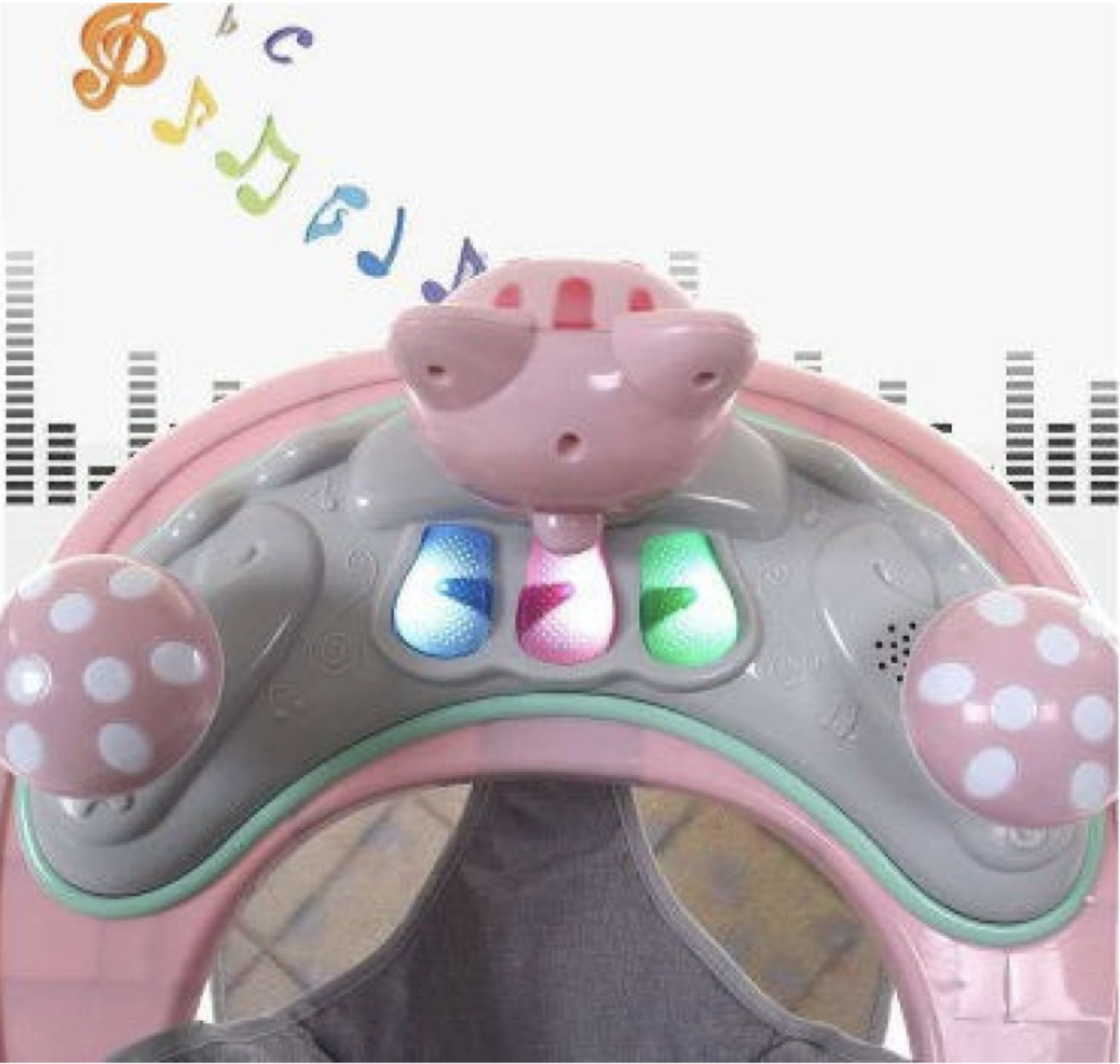• Panou de jucarii detasabil, interactiv, care necesita 2 baterii AA 1.5V, neincluse