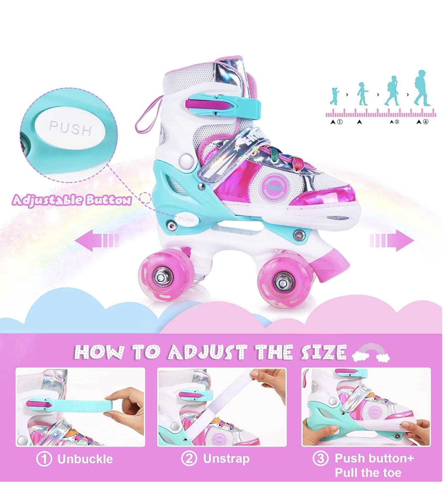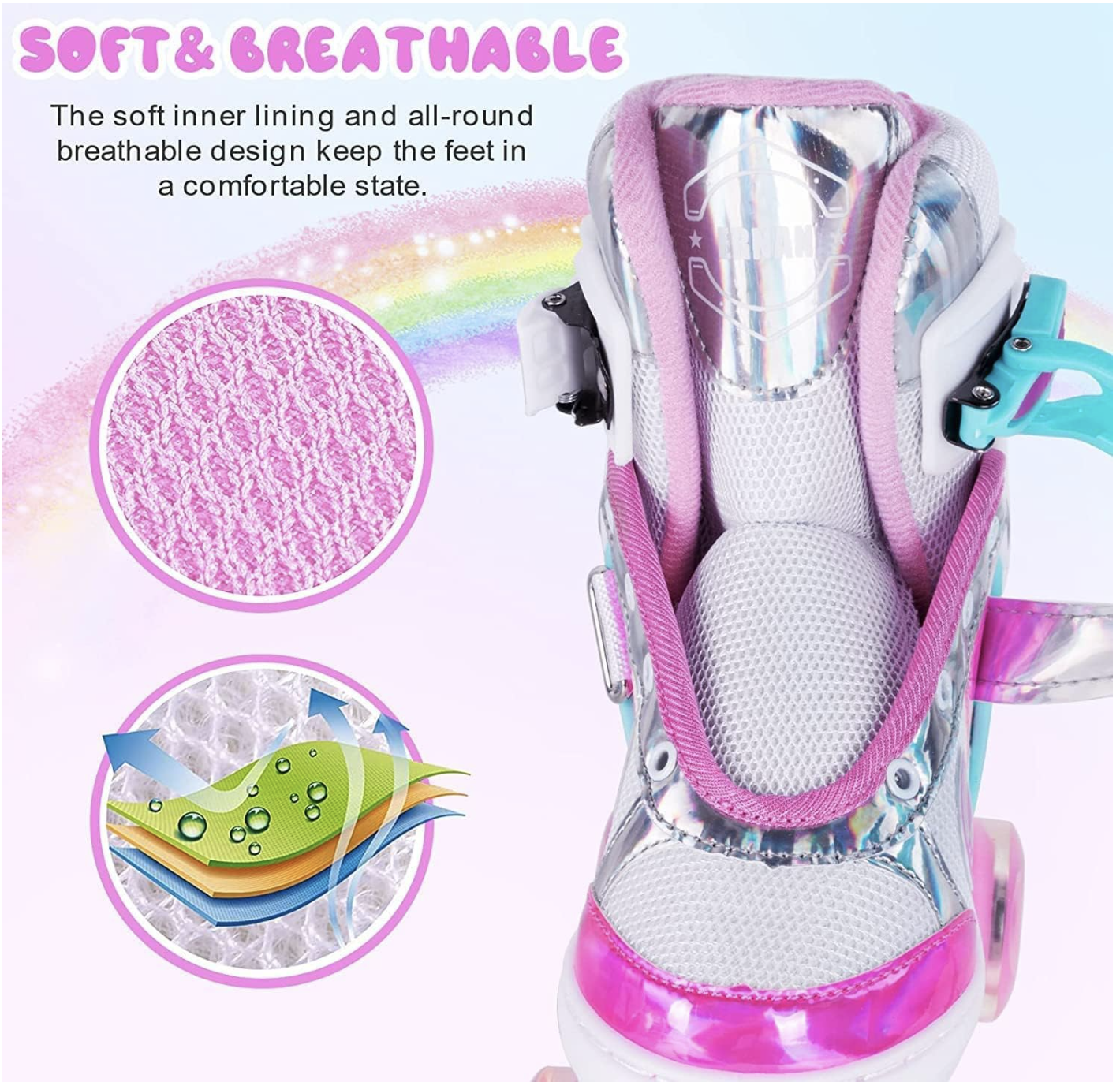 1 pereche de role roz reglabile cu lumini
