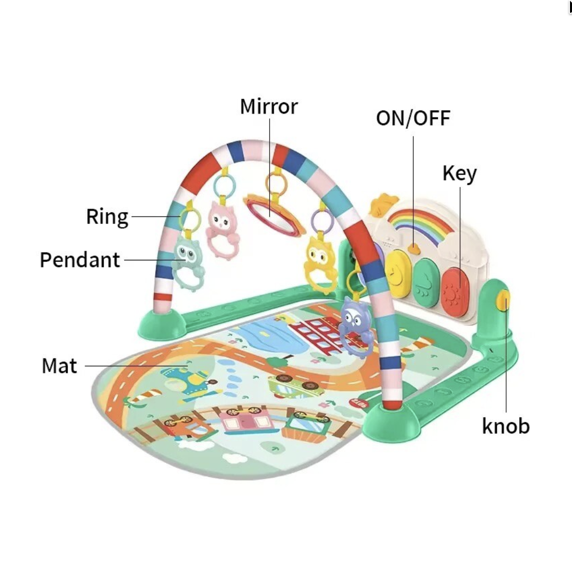 Saltea activitati bebe Baby Piano Fitness Rack verde – centru de joaca muzical