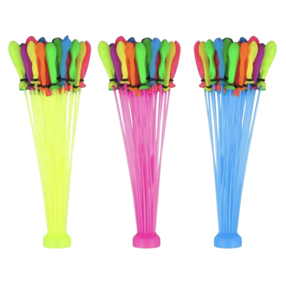 Setul include 3 manunchiuri a cate 37 de baloane colorate, fiecare cu prindere si un sistem de umplere.