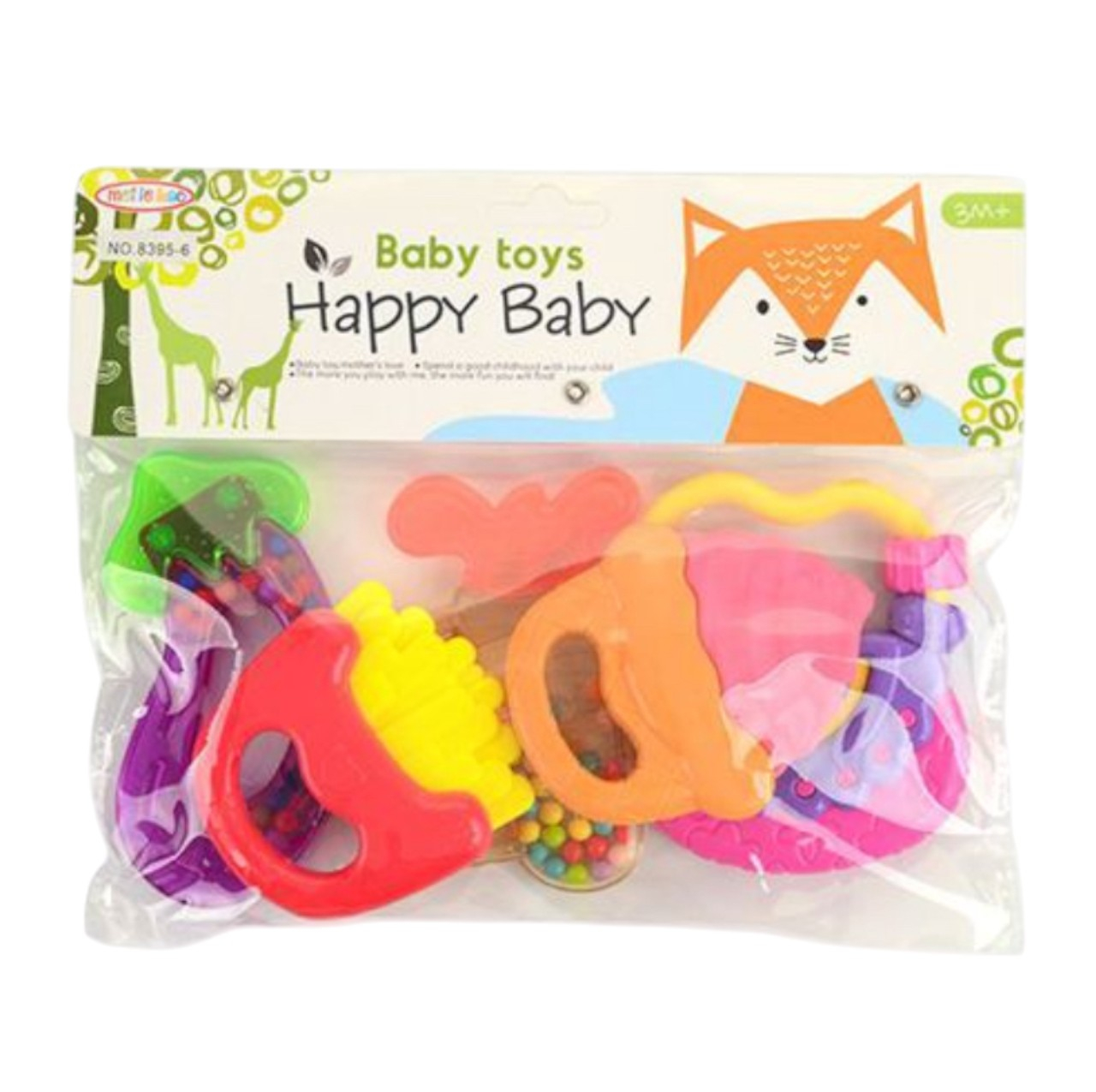 Set 5 jucarii zornaitoare cu suprafete moi siliconate pentru dentitia bebelusilor
