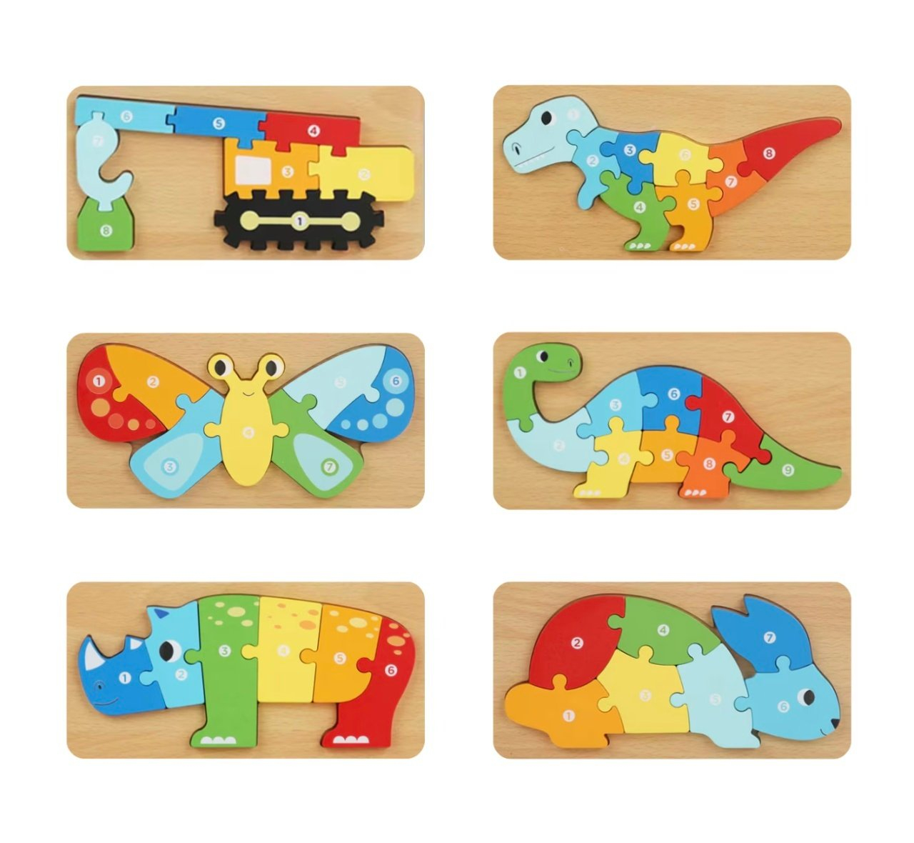 Recunoasterea animalelor si a cifrelor: Fiecare tema ajuta la invatarea numelui si formei animalelor, imbunatatind vocabularul, dar si invatarea cifrrelor, fiecare piesa fiind numerotate.