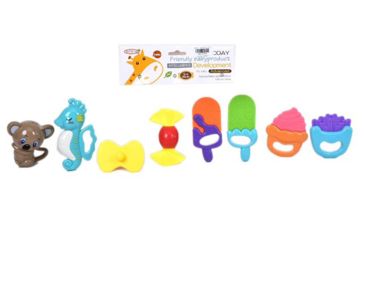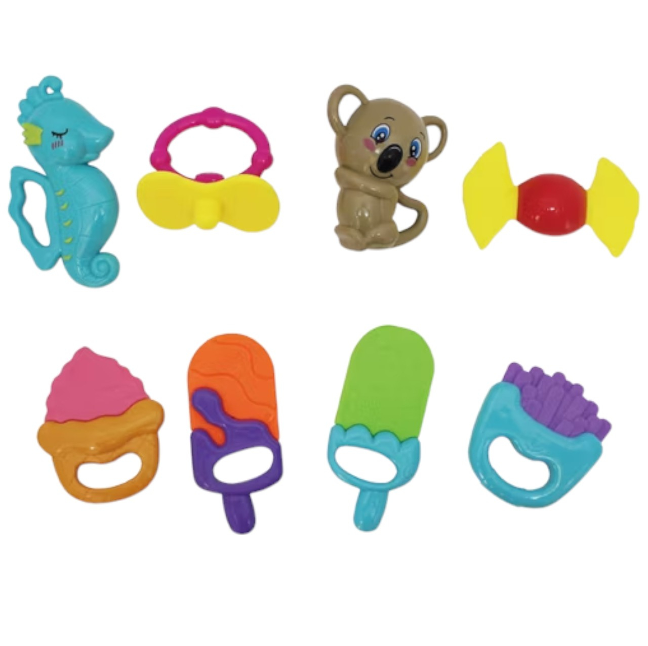 Set 8 jucarii zornaitoare cu suprafete moi siliconate pentru dentitia bebelusilor