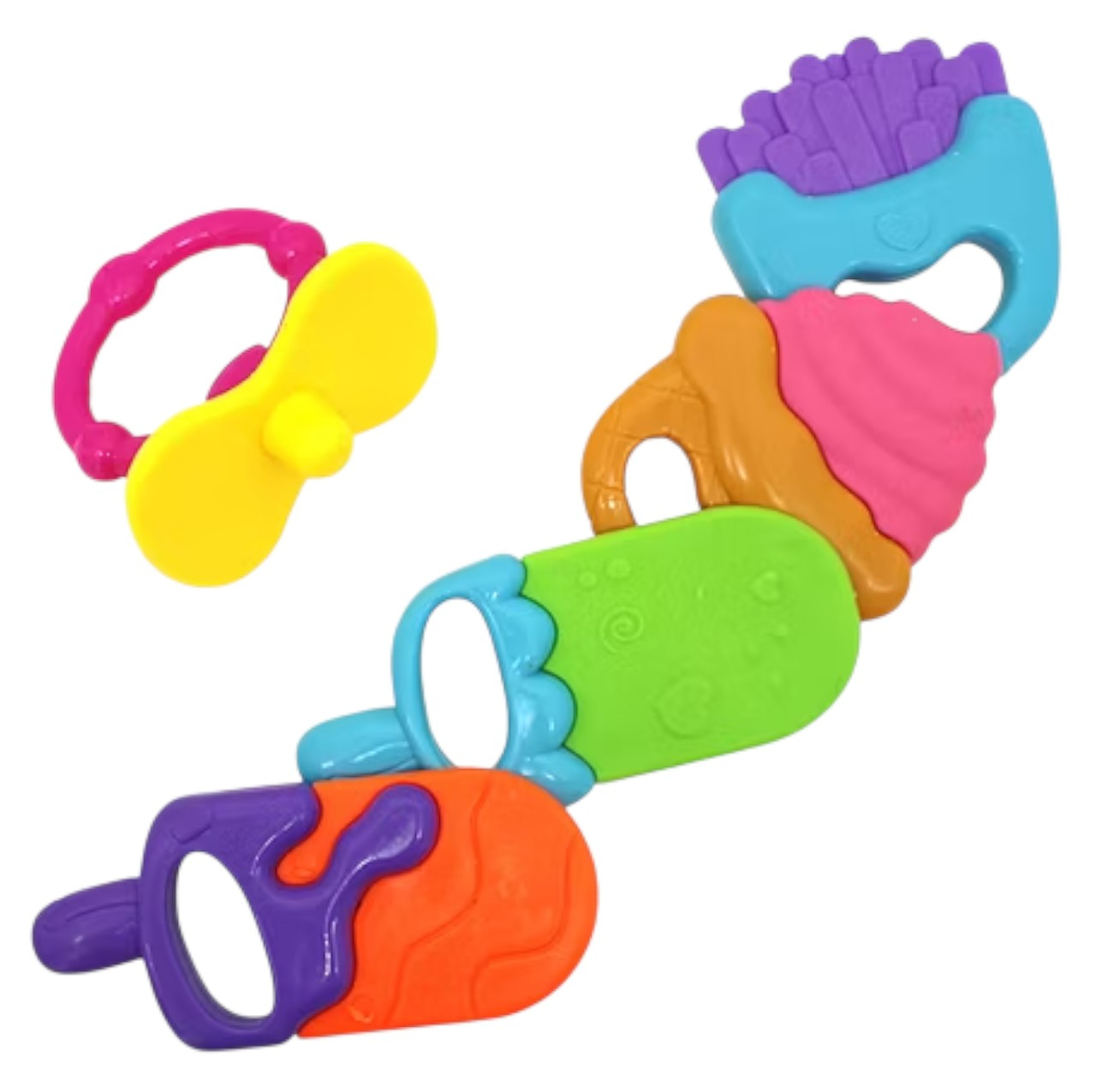 Formele speciale si culorile vii incurajeaza copilul sa exerseze si sa se joace stimuland astfel dezvoltarea individuala. Nu contine bpa. Se poate refrigera pentru 1 ora, ajutand la calmarea gingiilor.
