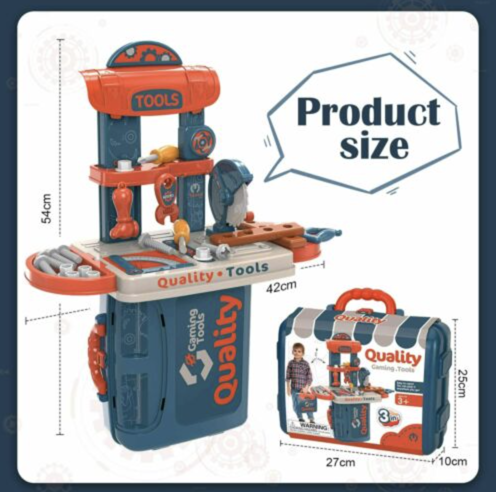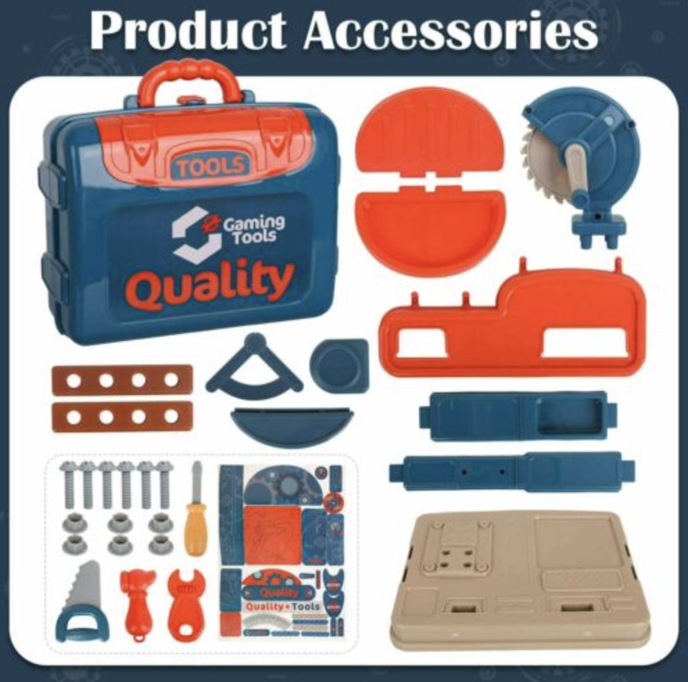 Diverse instrumente și materiale: Setul include o varietate de unelte de mână ușor de folosit, cum ar fi ciocanul, șurubelnița, cleștii, precum și șuruburi, șaibe și bucăți de lemn. Acestea permit copiilor să construiască și să demonteze diferite obiecte sau să creeze propriile lor proiecte.