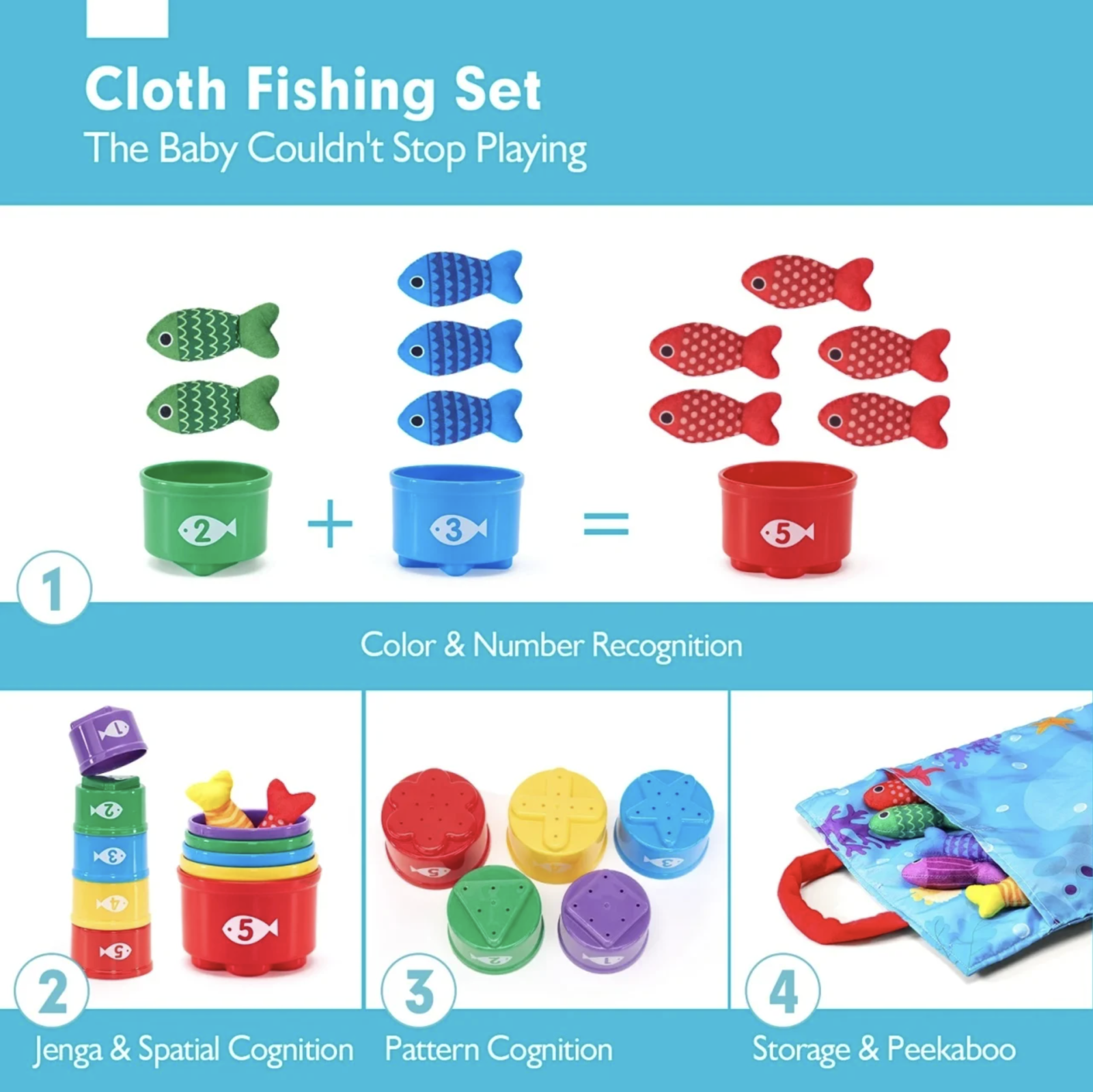 Set de pescuit si sortare culori textil, 22 piese, pentru copii 6 luni+