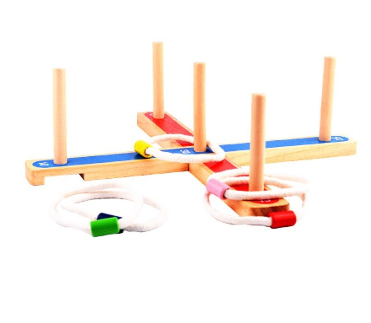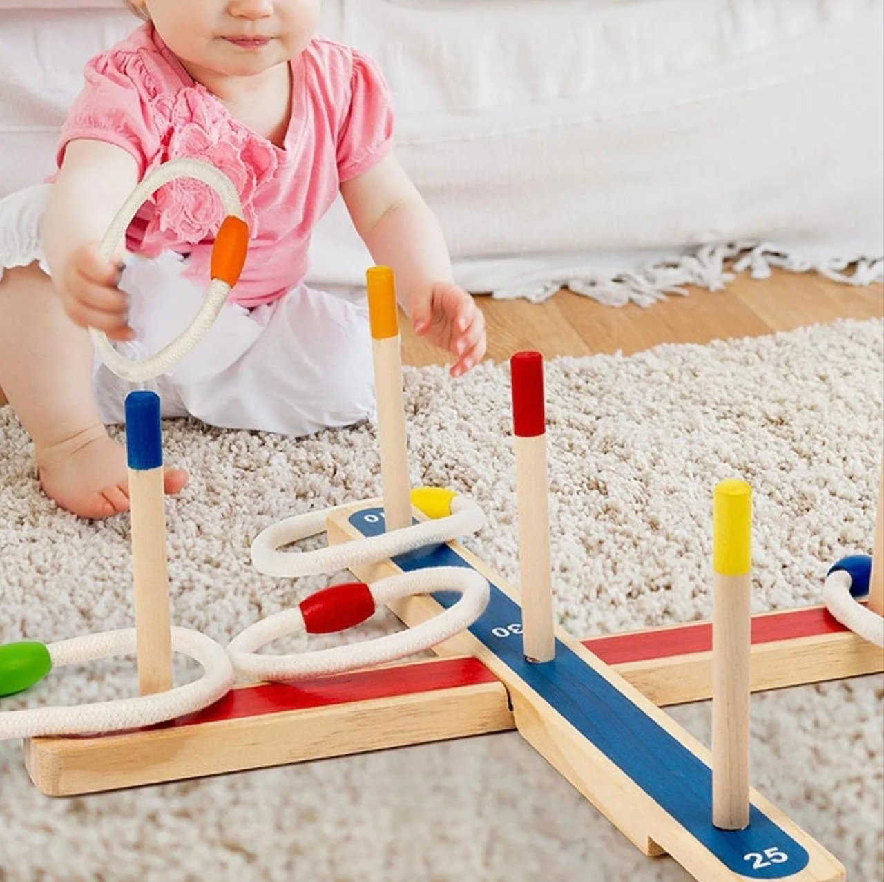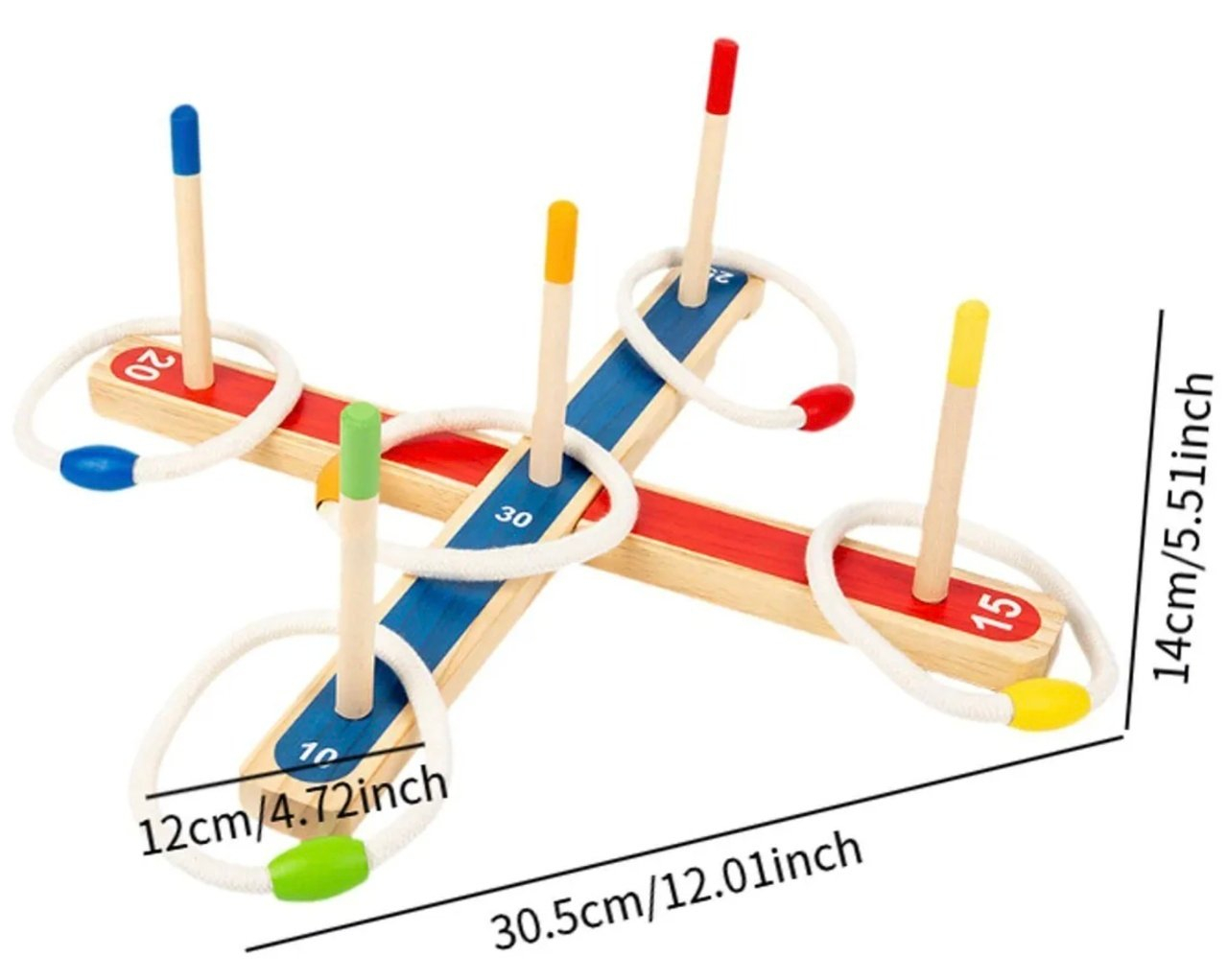 Tip joc: Aruncarea inelelor pe bastoane de lemn, stimulând concentrarea și coordonarea