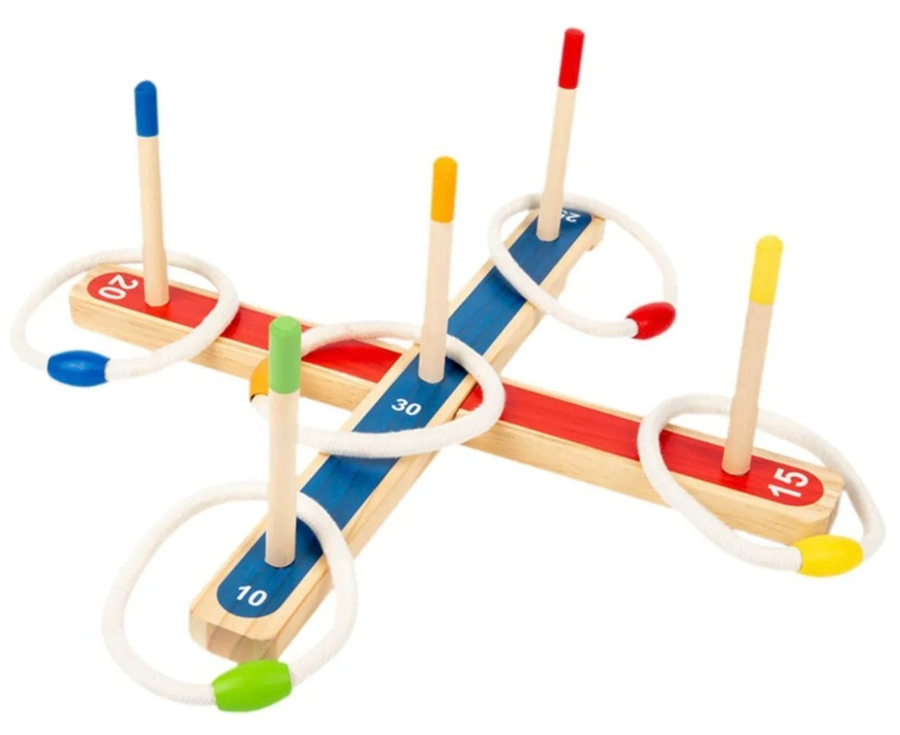 Acest set de inele din lemn natural colorat este jocul perfect pentru distracție în aer liber! Ușor de asamblat, astfel încât să puteți începe să jucați imediat, acest joc clasic aduce provocări de concentrare și îndemânare pentru întreaga familie.