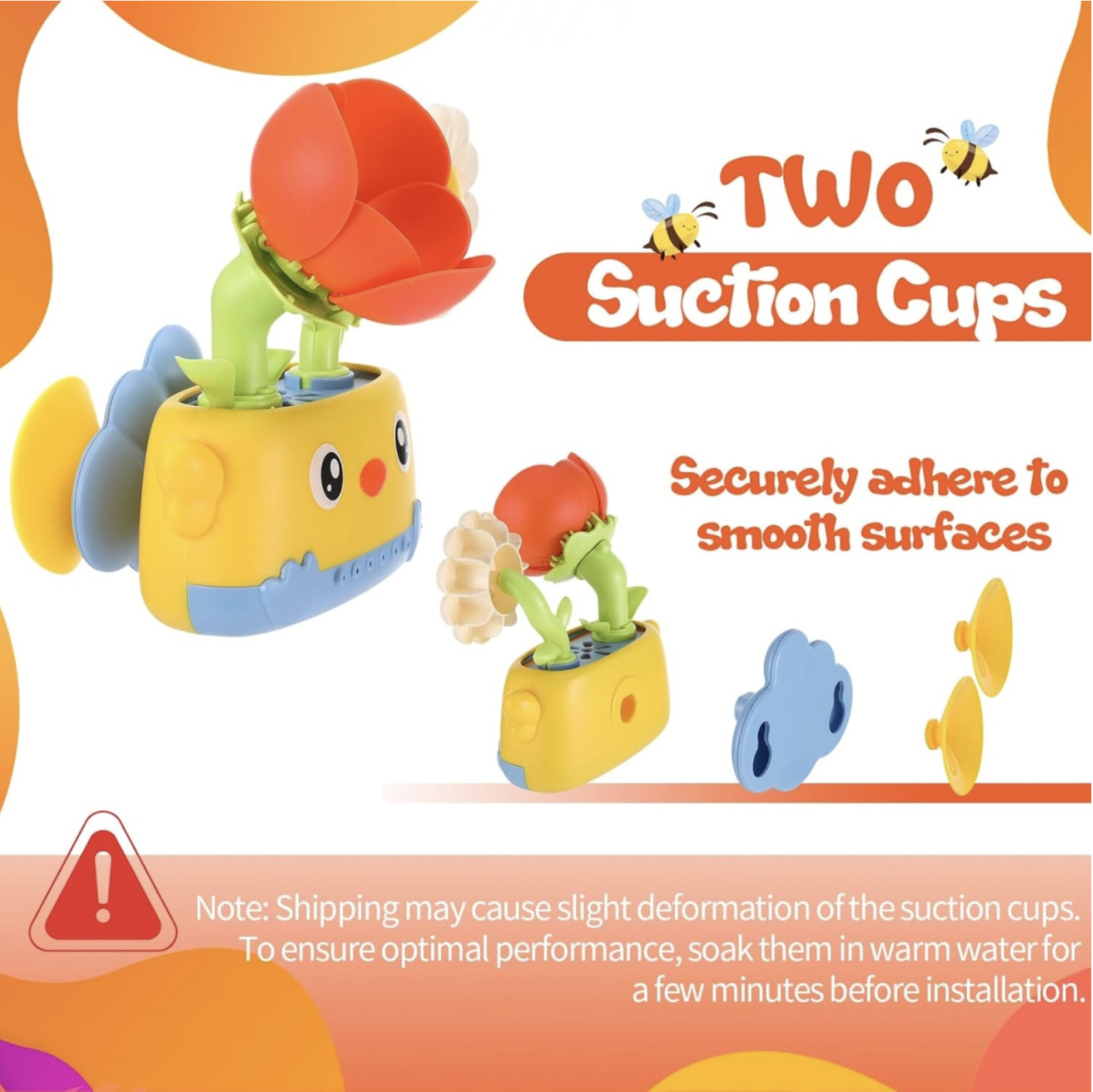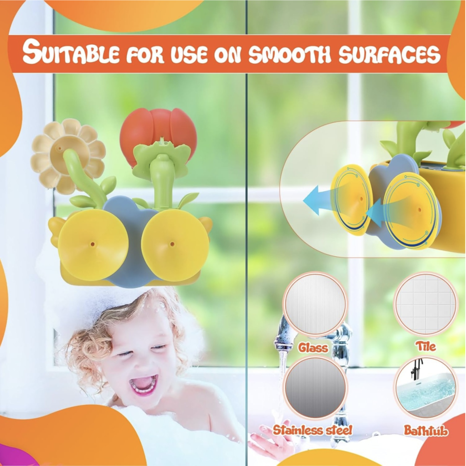 Set jucarie interactiva de baie Flori vesele cu ventuze pentru copii 18 luni+