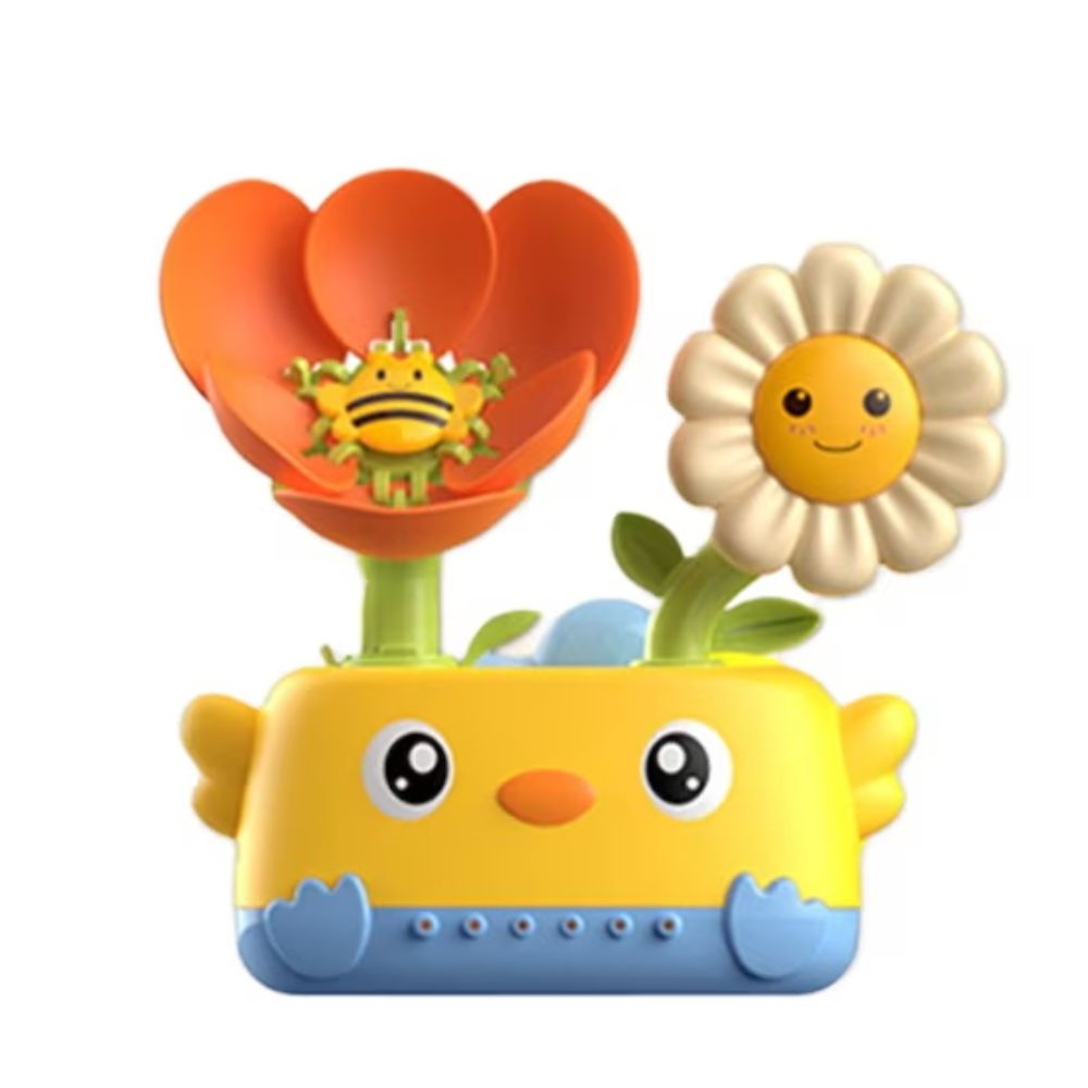 Setul de baie Flori vesele transforma joaca in apa intr-o activitate interactiva si educativa. Copilul toarna apa in partea superioara cu lingura inclusa, iar apa pune in miscare mecanismele jucariei, facand florile sa se deschida si sa se roteasca. Sistemul de scurgere creeaza mici jeturi de apa, iar efectele vizuale rezultate incurajeaza explorarea, atentia si intelegerea relatiei cauza-efect. Jucaria se fixeaza usor pe cada, faianta, chiuveta sau alte suprafete netede, cu ajutorul ventuzelor.