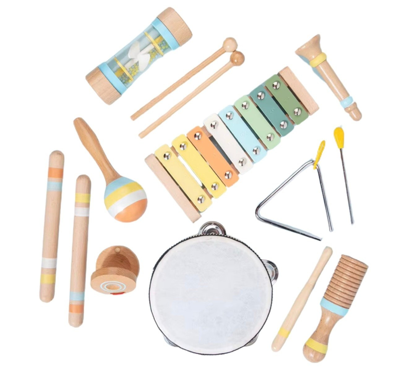 Set Montessori de 9 instrumente muzicale pentru copii, din lemn