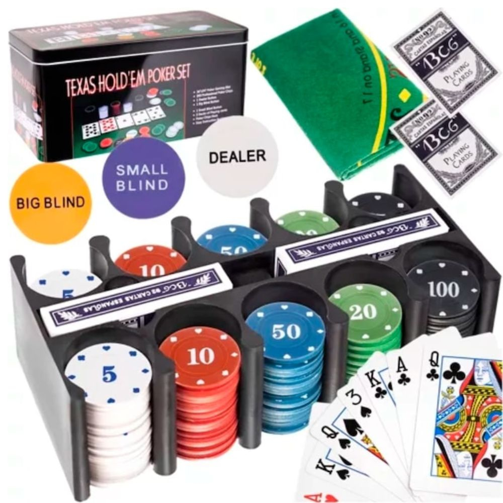 200 jetoane (alb, rosu, negru, albastru, verde – cate 40 buc)