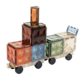 Continut pachet: 50 piese magnetice de inalta transparenta + 2 baze cu roti + carte cu idei de constructie