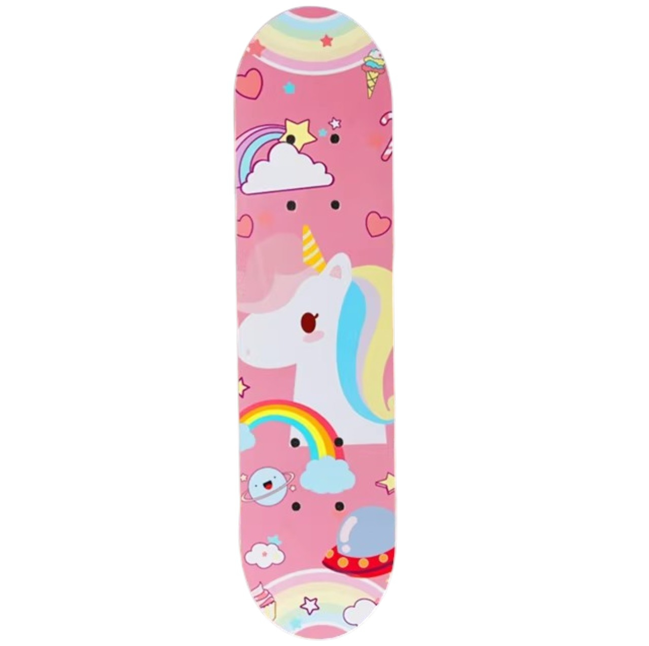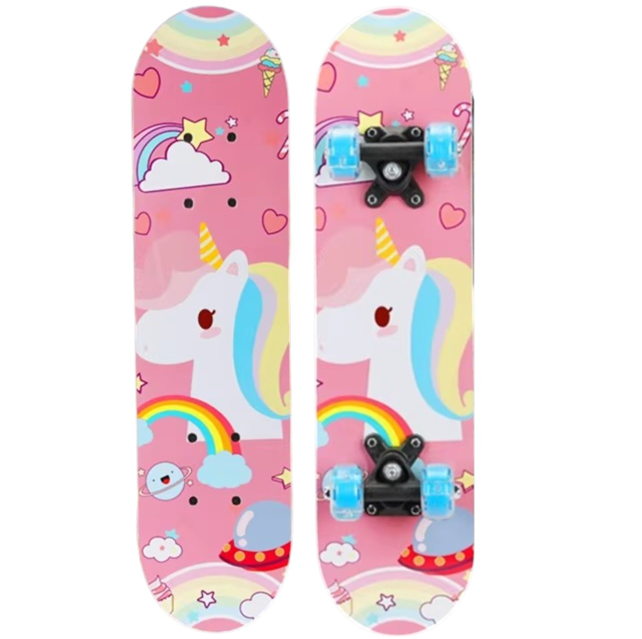 Acest skateboard este alegerea perfecta pentru micii incepatori care doresc sa invete echilibrul si bazele mersului pe role. Construit din 7 straturi de artar chinezesc, panoul ofera o baza stabila si rezistenta, fiind adaptat special pentru greutatea si dimensiunile copiilor. Designul atractiv realizat prin procesul cu folie de cupru si rotile colorate transforma fiecare iesire in parc intr-o activitate dinamica si plina de stil.