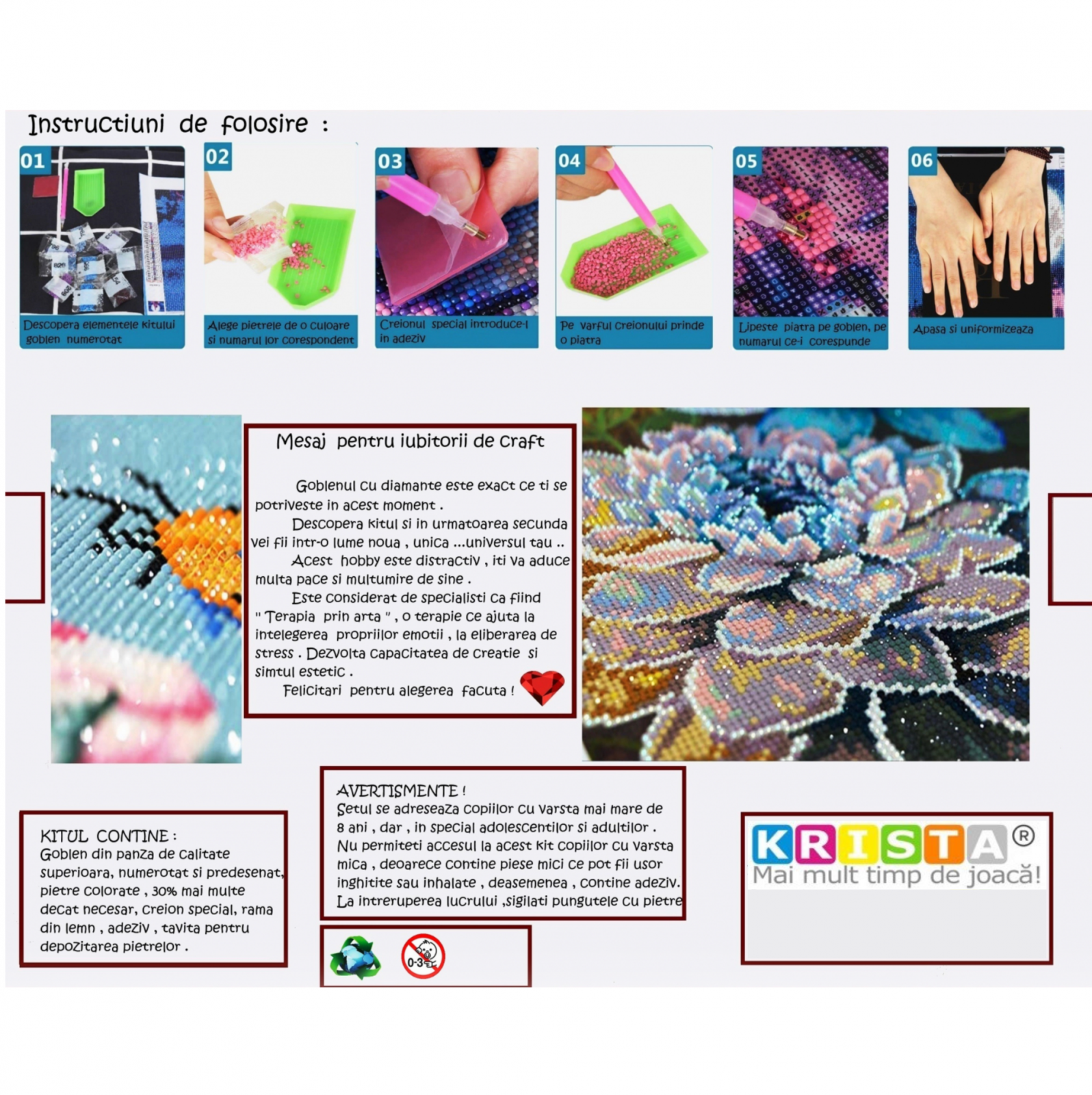 Atenție: Produsul conține piese mici și adeziv, fiind recomandat copiilor peste 8 ani. Supravegheați utilizarea pentru siguranță