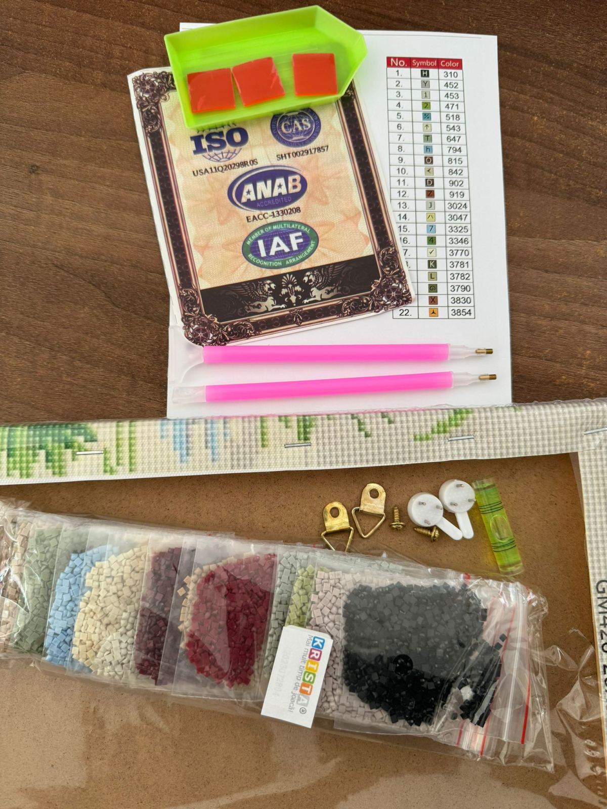 - Pânză numerotată care facilitează aplicarea pietricelelor.