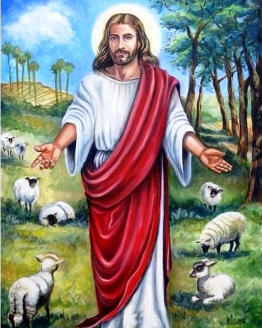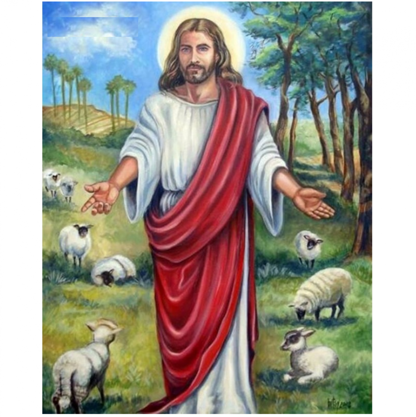 Tablou GM793 Goblen Diamante Patrate, cu rama, 50 x 40 cm, Iisus cu turma de oi