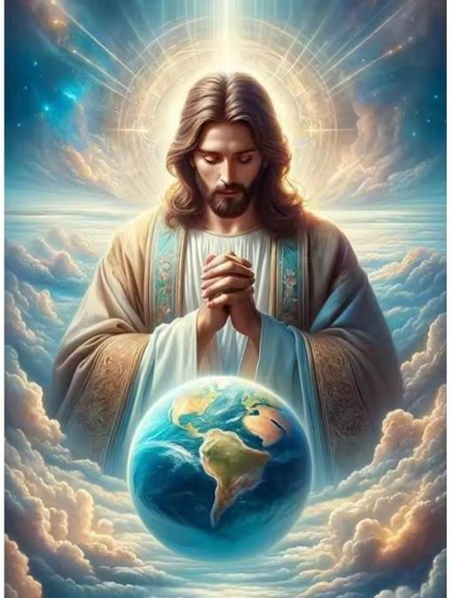 Tablou GM924 Goblen Diamante Patrate, cu rama, 50 x 40 cm, Iisus Protectorul Pamantului