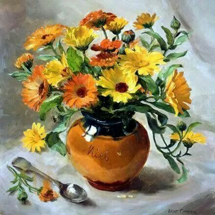 Tablou PM634 Flori galbene in ulcica, Picteaza dupa numere, cu rama de lemn, 20 x 30 cm
