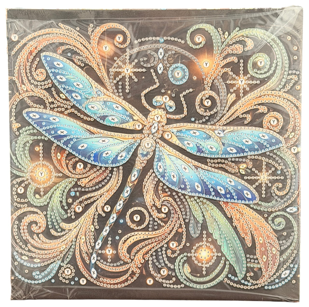 Tablou YY71, Libelula, cu Diamante, cu Umplere partiala, cu rama, 25x25 cm