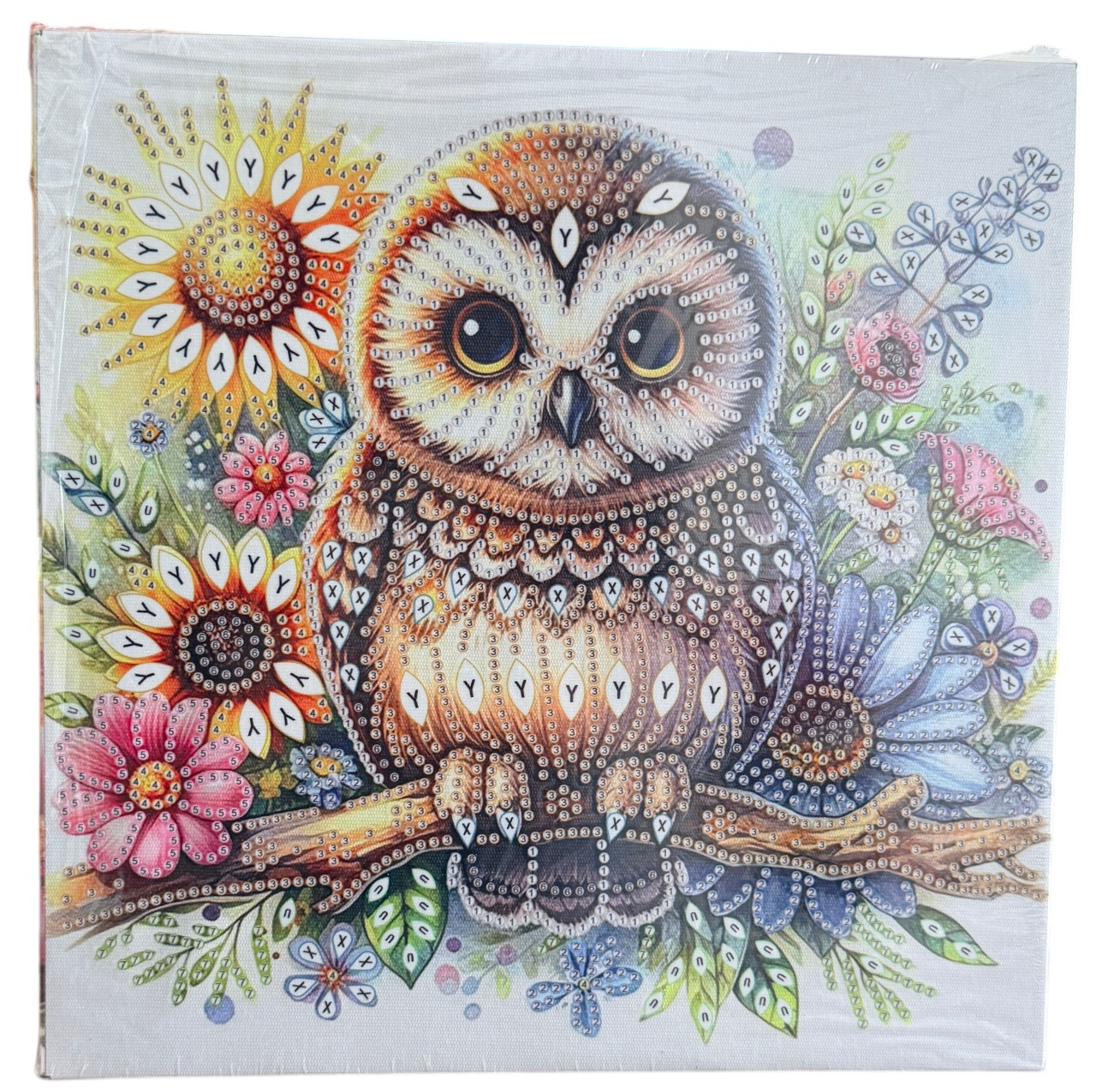 Tablou YY91, Bufnita,  cu Diamante, cu Umplere partiala, cu rama, 25x25 cm