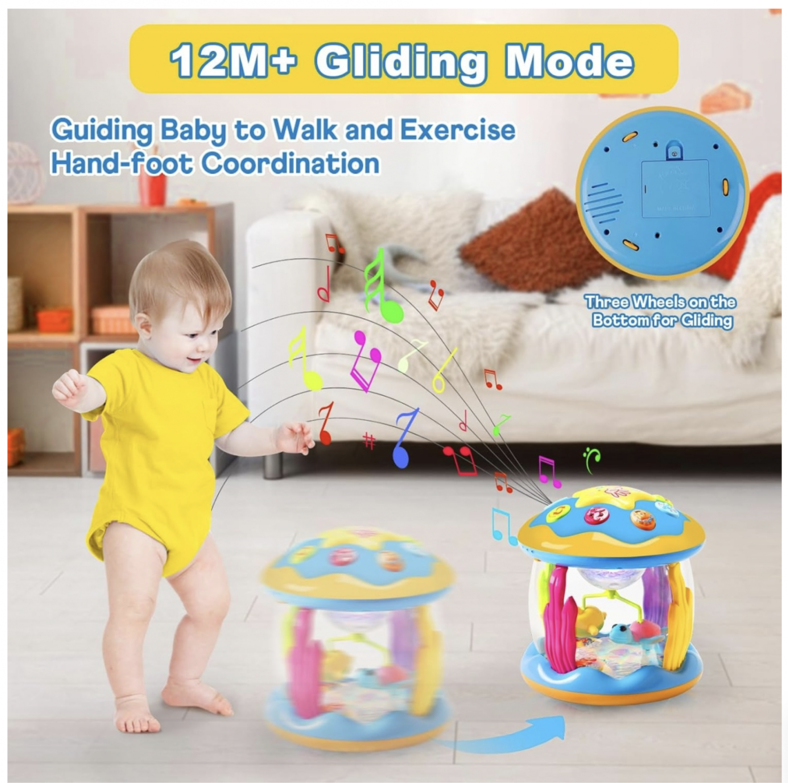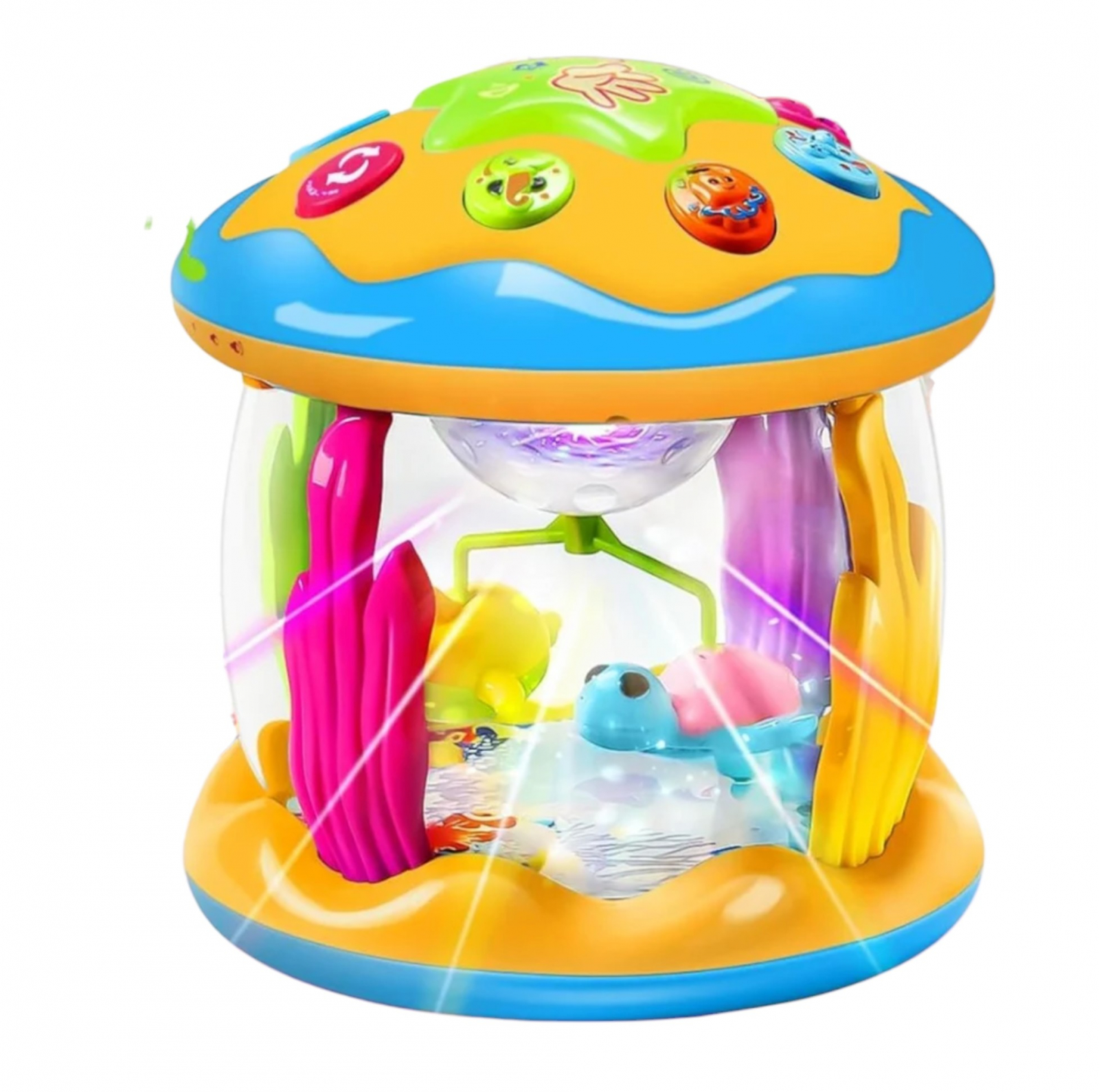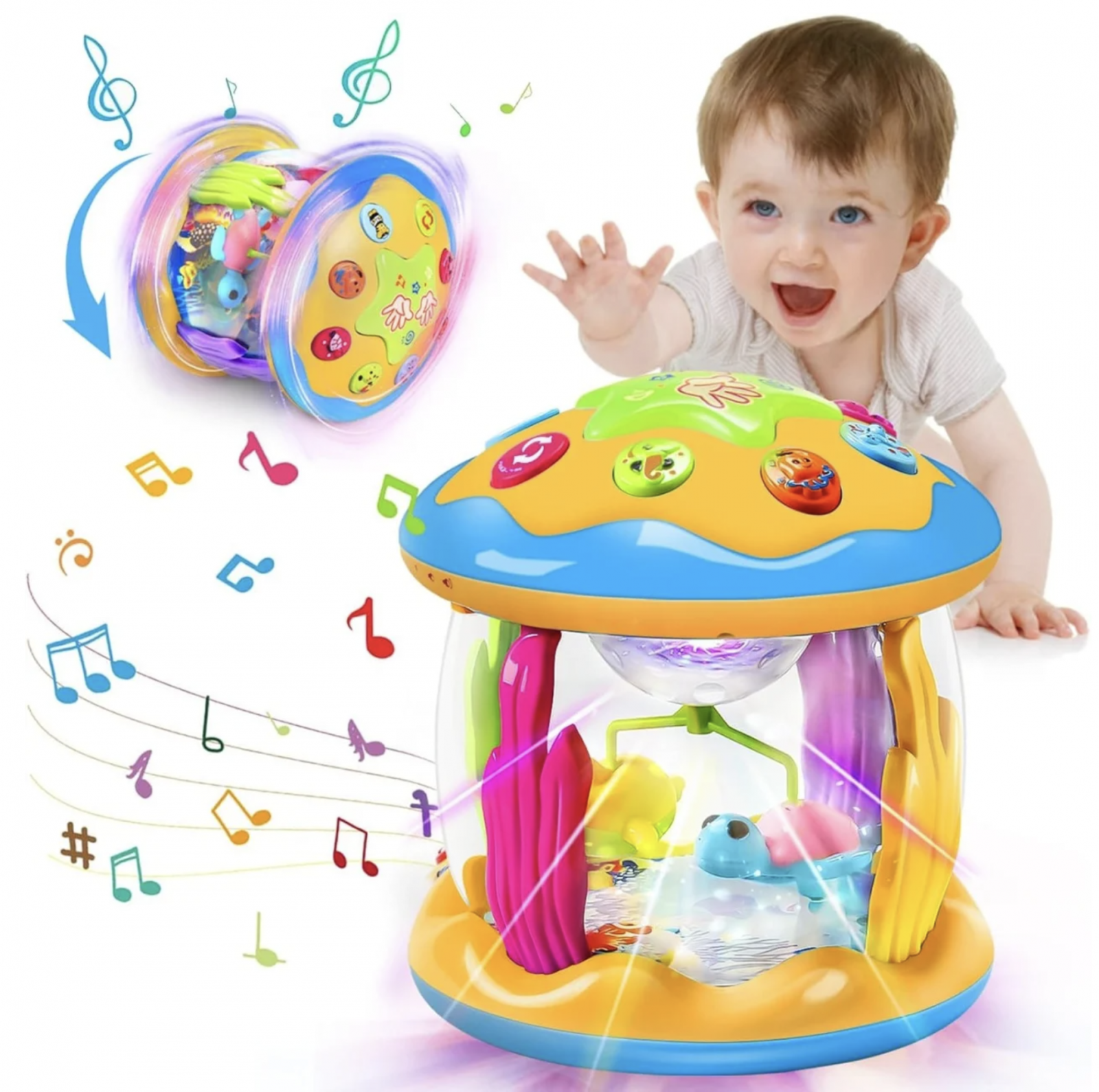 Jucarie multisenzoriala special conceputa pentru a stimula atentia si dezvoltarea timpurie a bebelusilor. Toba combina lumini, sunete si miscare pentru a incuraja interactiunea activa.
