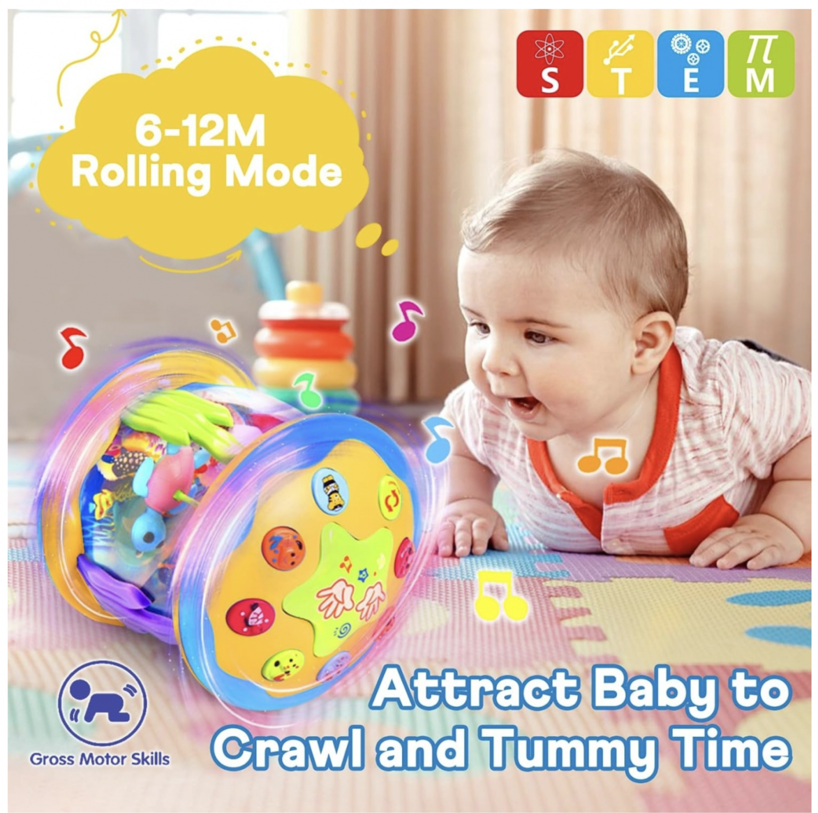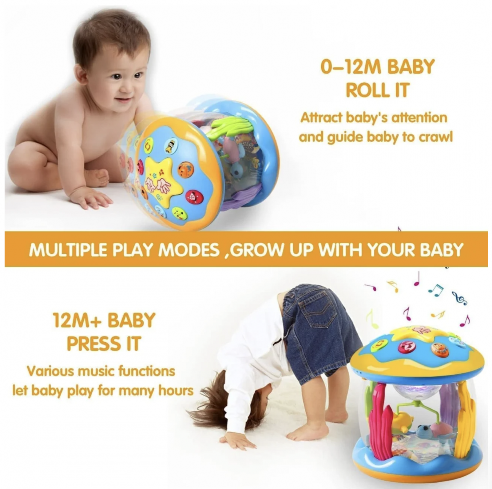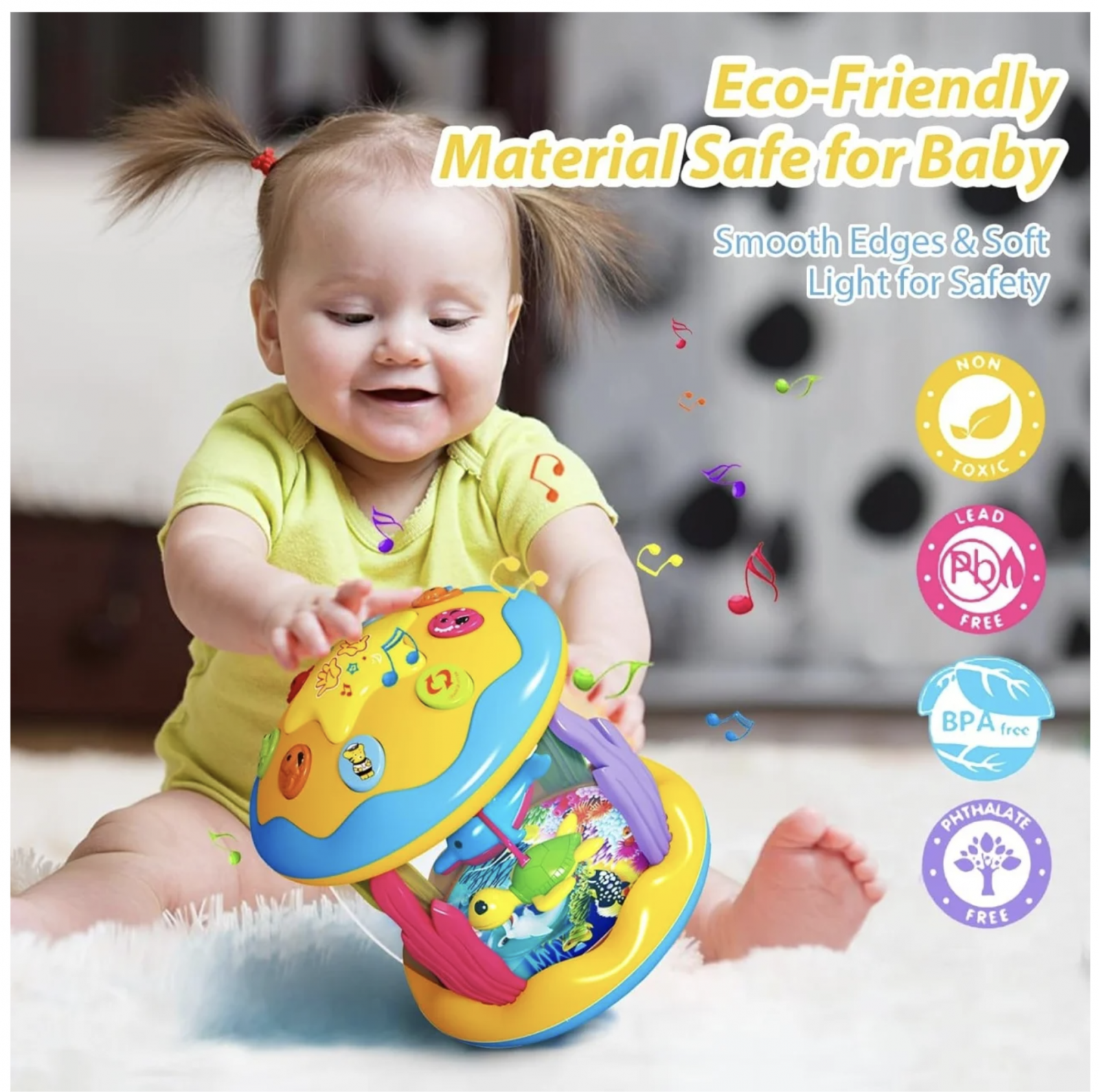Jucarie multisenzoriala special conceputa pentru a stimula atentia si dezvoltarea timpurie a bebelusilor. Toba combina lumini, sunete si miscare pentru a incuraja interactiunea activa.