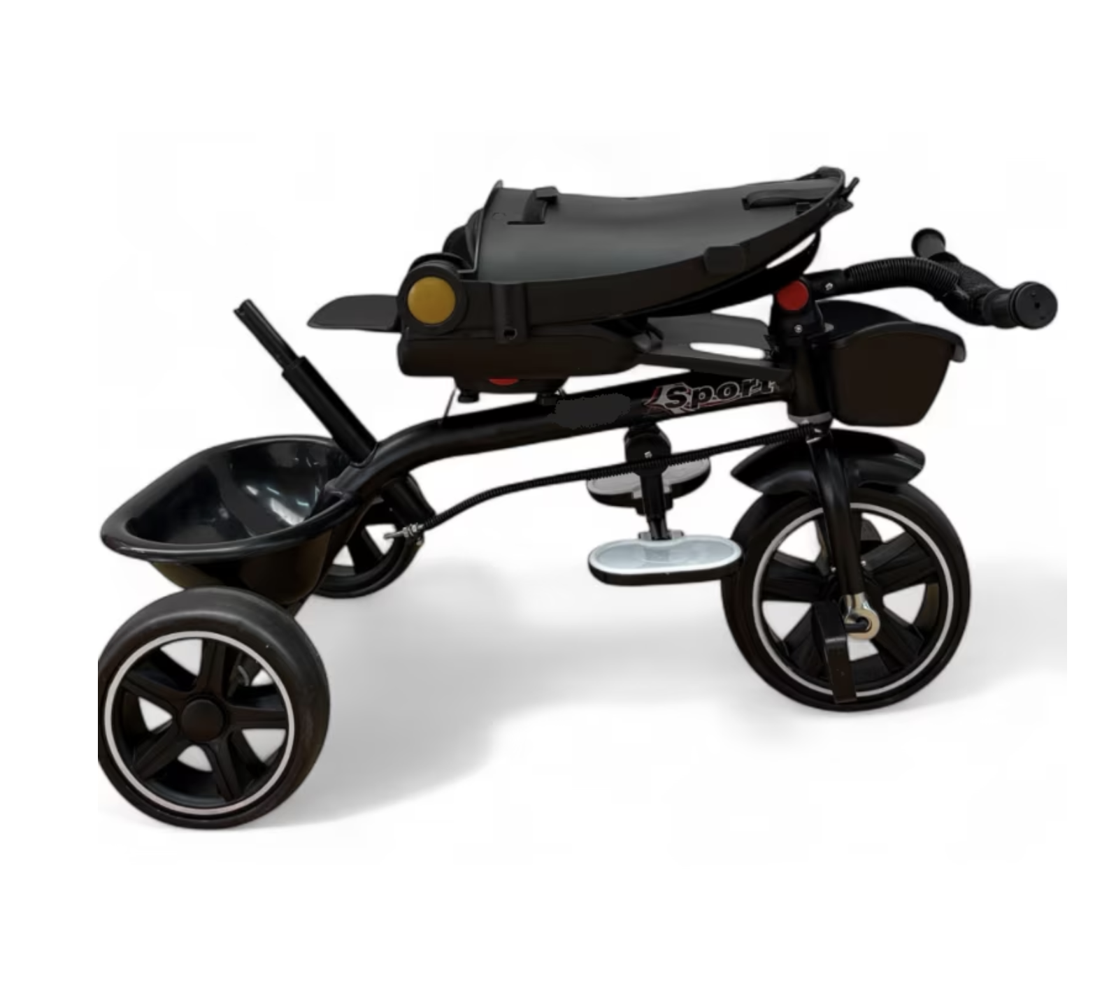 In prima etapa, tricicleta este folosita cu fata spre parinte, oferind control total si siguranta sporita. Pe masura ce copilul creste, scaunul se poate roti, iar componentele precum suportul de picioare, copertina sau manerul parental pot fi detasate, transformand produsul intr-o tricicleta clasica.