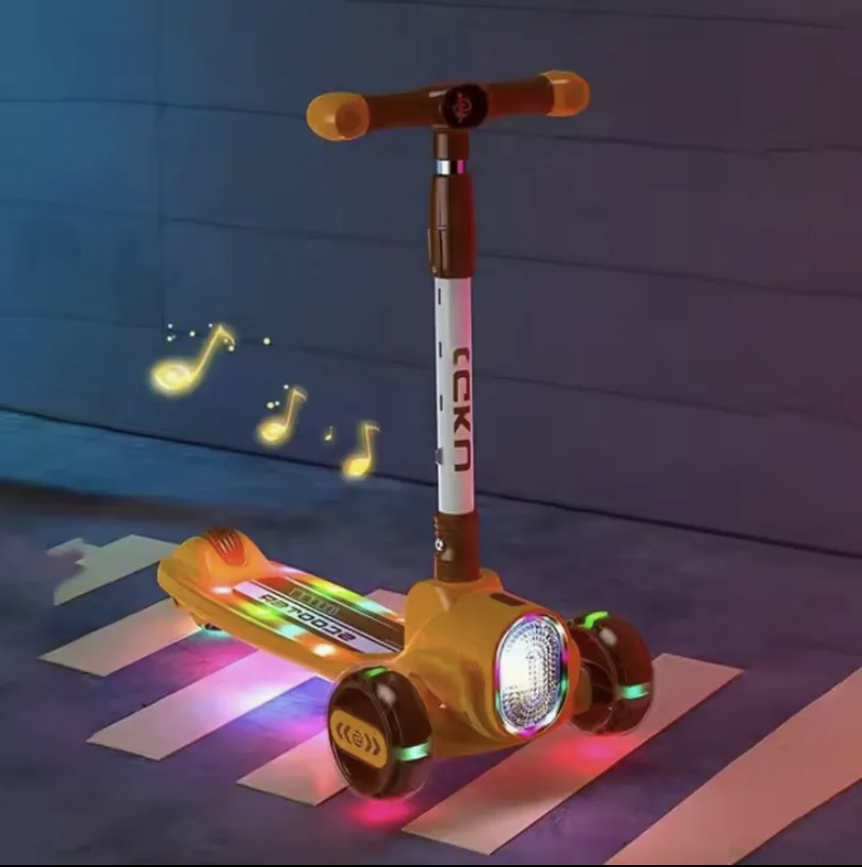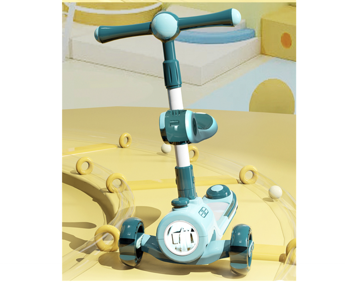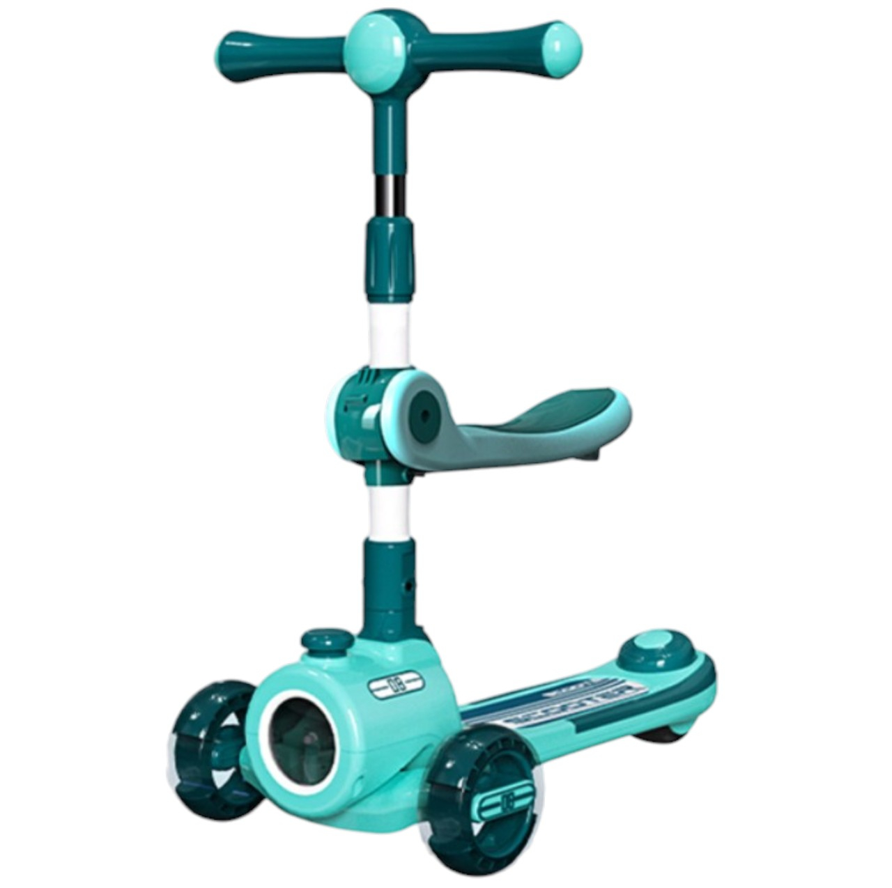 Trotineta 2022 verde, cu scaun, 3 roti LED, muzica, pliabila, reglabila, 3-12 ani