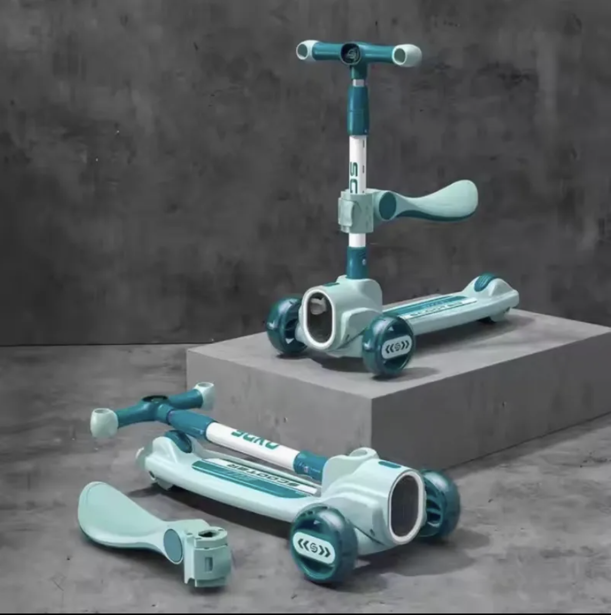 Trotineta multifunctionala pentru copii, cu scaun detasabil, ideala pentru joaca activa si dezvoltarea echilibrului. Se adapteaza pe masura ce copilul creste, de la modul cu sezut la cel clasic.